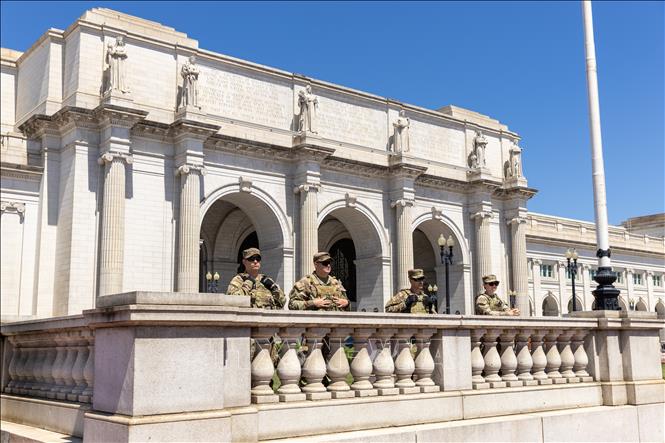 Binh sĩ Vệ binh Quốc gia gác tại Washington, D.C., Mỹ. Ảnh tư liệu: THX/TTXVN
