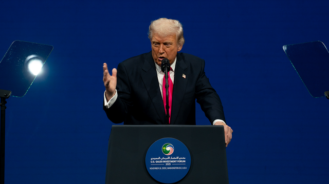 Tổng thống Donald Trump phát biểu tại Diễn đàn đầu tư Mỹ - Ả Rập Xê Út tại Trung tâm Kennedy ở Washington, DC, ngày 19/11/2025. Ảnh: Getty