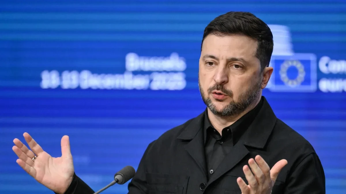 Tổng thống Ukraine Volodymyr Zelensky phát biểu tại Brussels ngày 18/12/2025. Ảnh: Getty Images.