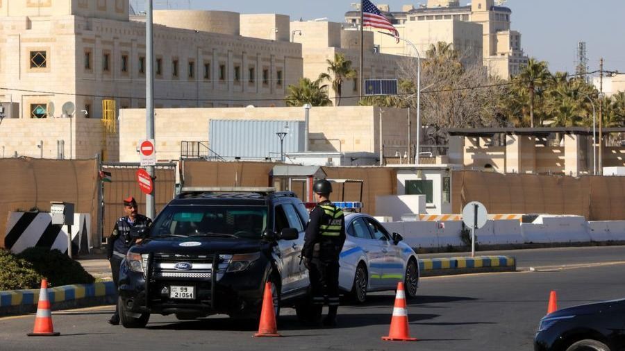 Tăng cường an ninh tại khu vực Đại sứ quán Mỹ ở Jordan. Ảnh: XINHUA