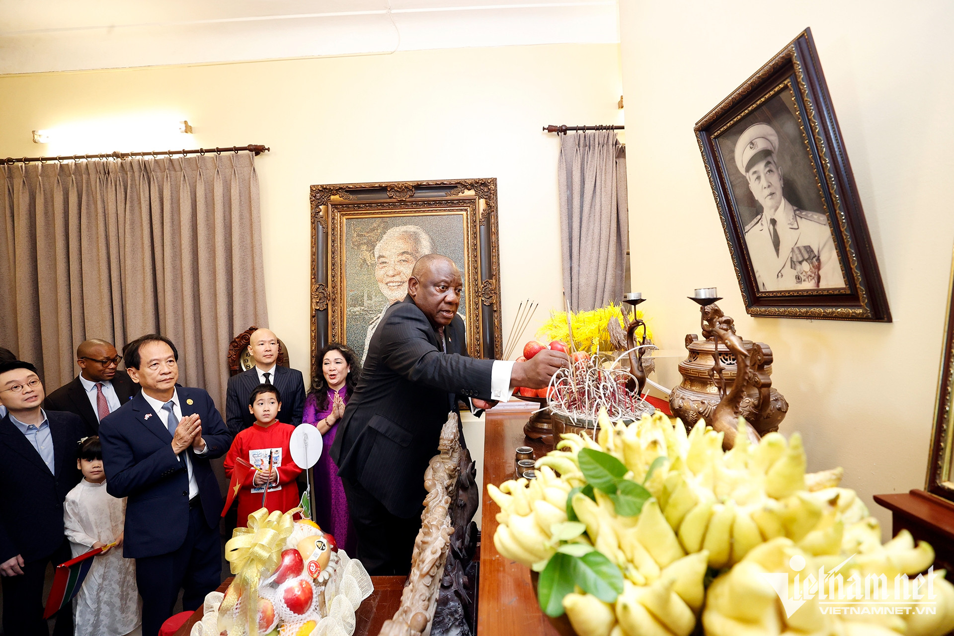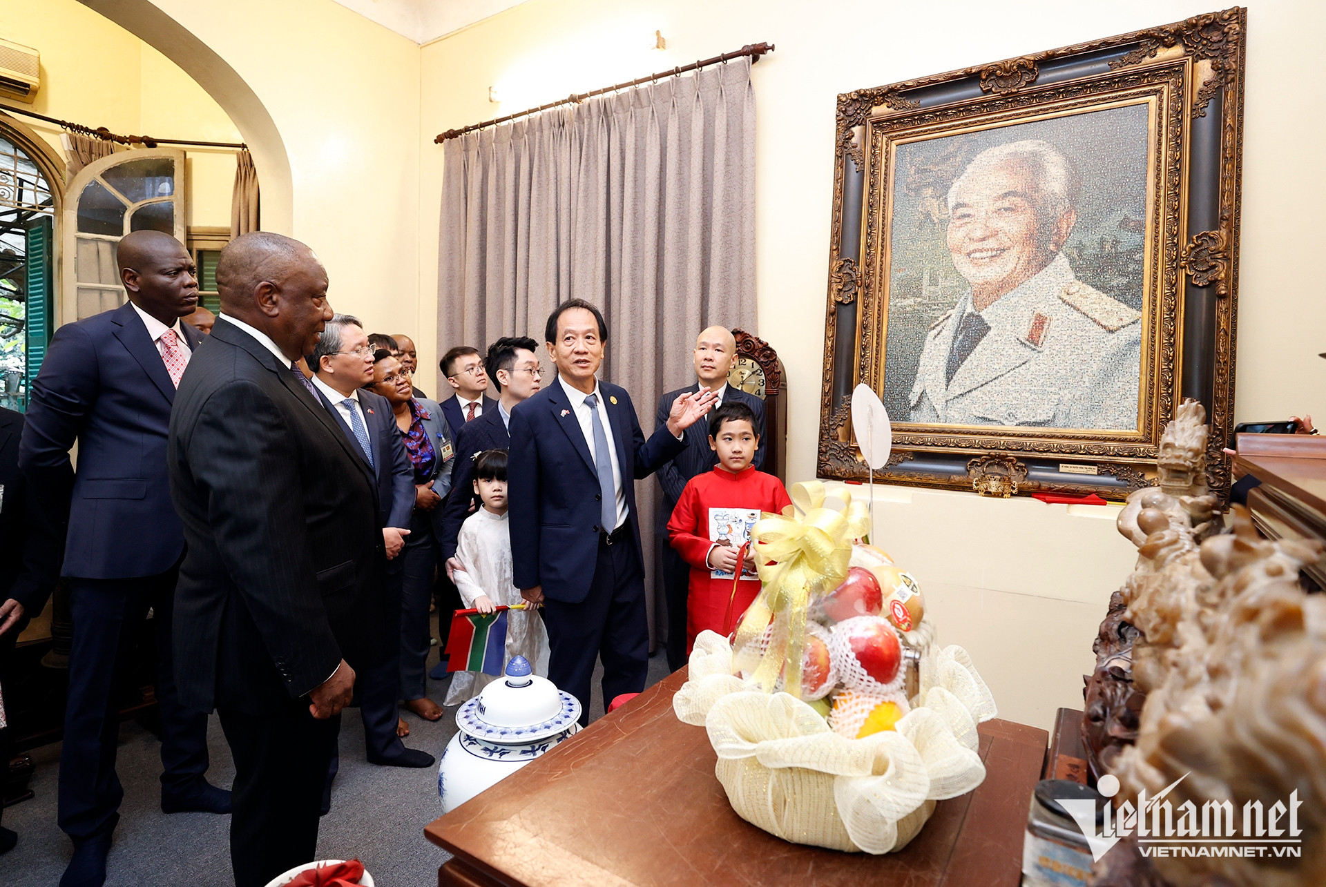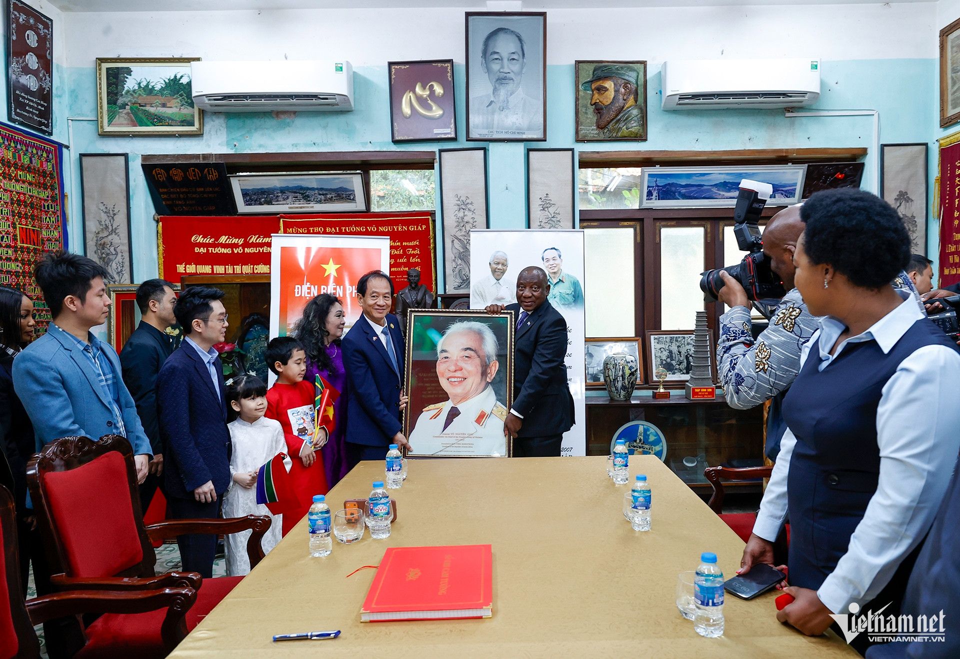 Tại nhà riêng Đại tướng Võ Nguyên Giáp, Tổng thống Nam Phi Matamela Cyril Ramaphosa và đoàn đã dâng hương, thành kính bày tỏ lòng tri ân sâu sắc đến Đại tướng Võ Nguyên Giáp, nguyên Ủy viên Bộ Chính trị, nguyên Bí thư Quân ủy Trung ương, nguyên Bộ trưởng Bộ Quốc phòng, Tổng Tư lệnh QĐND Việt Nam.