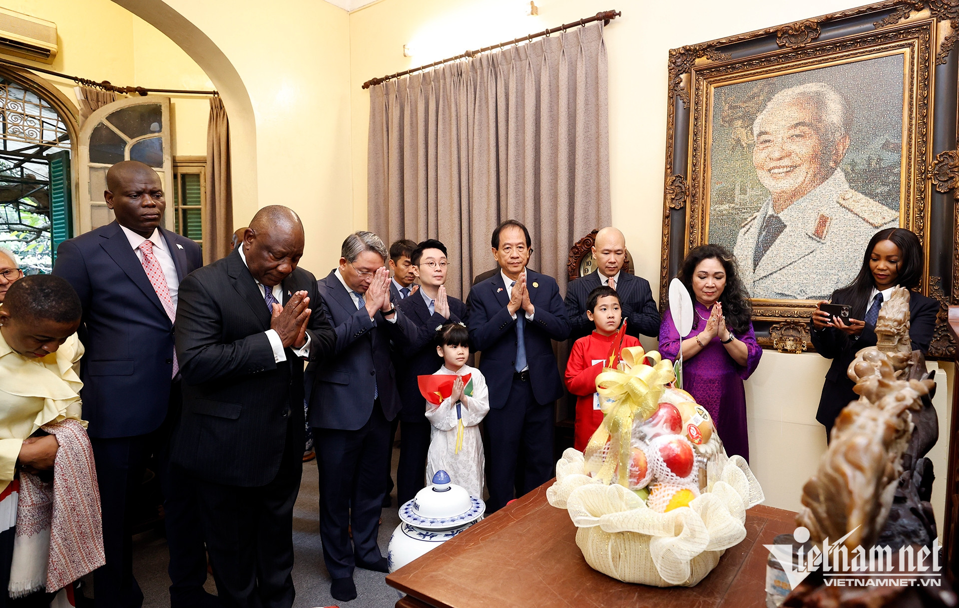 Tổng thống Nam Phi Matamela Cyril Ramaphosa thắp hương tại gian thờ Đại tướng Võ Nguyên Giáp