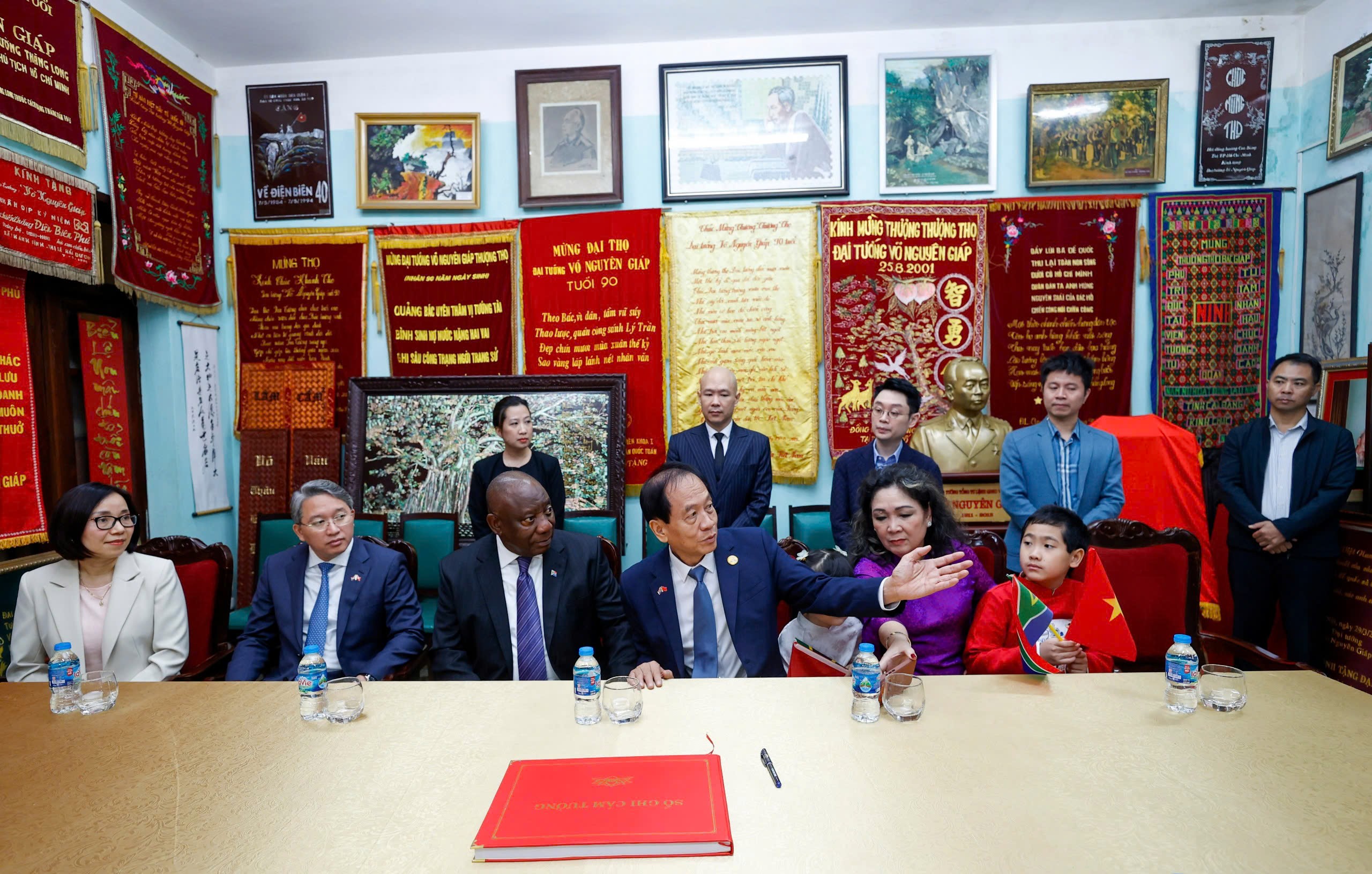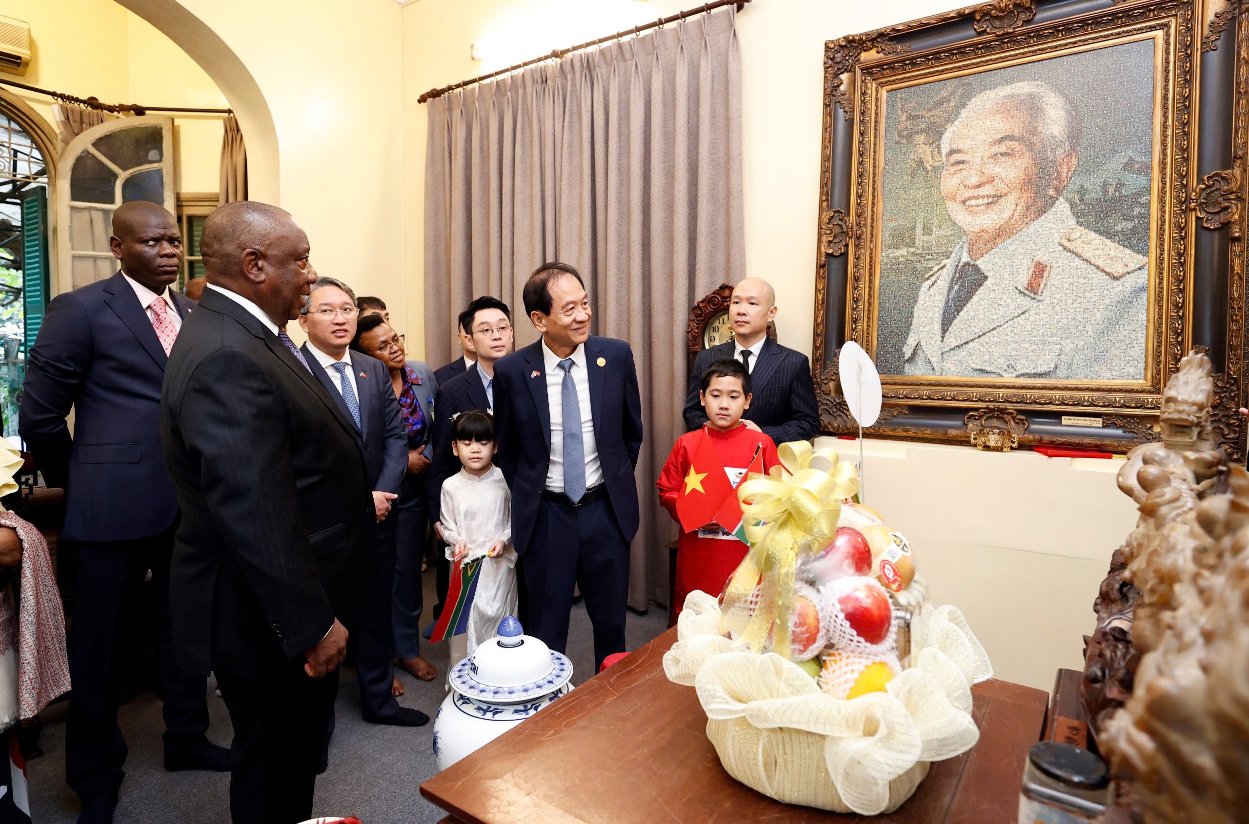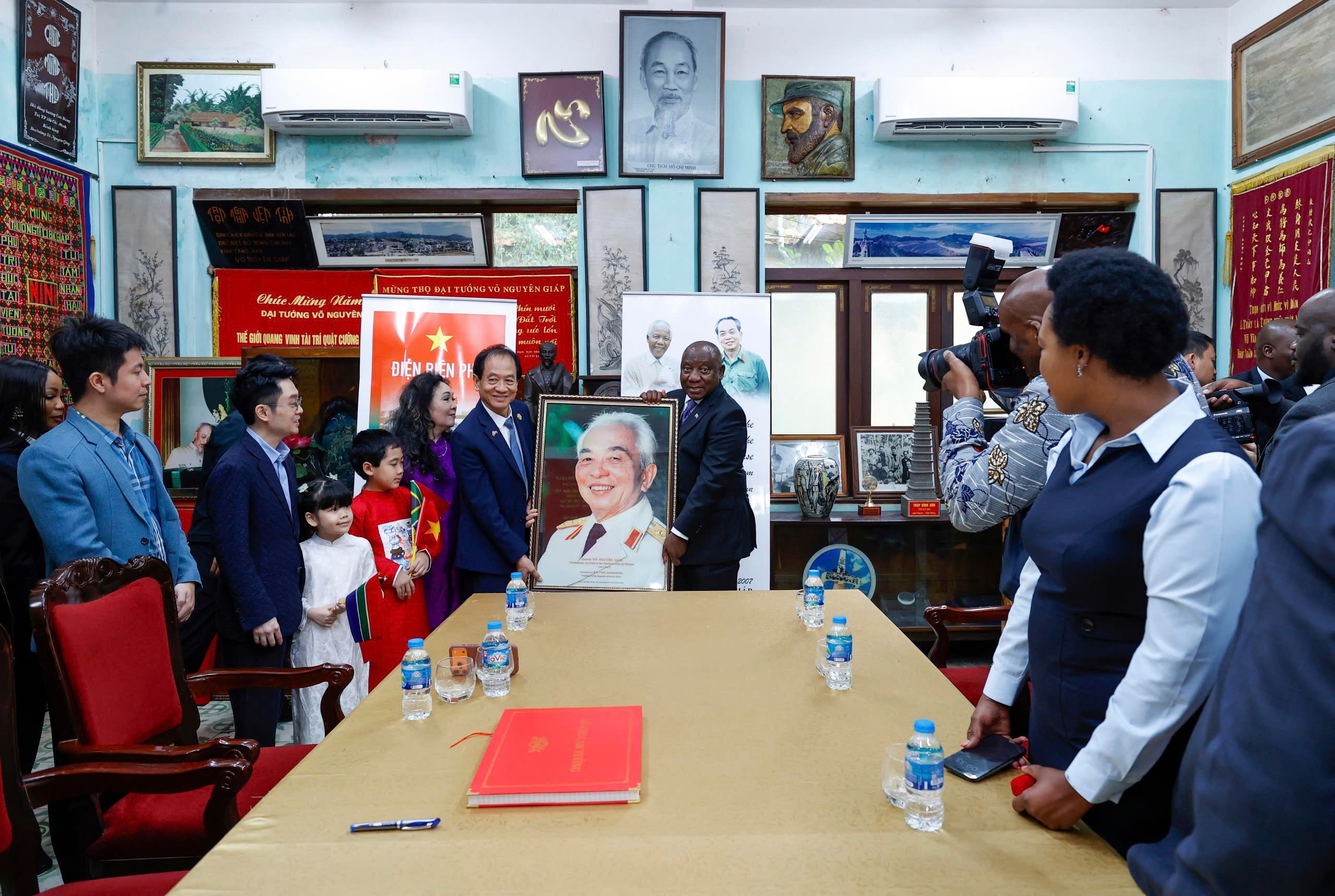 Tổng thống Nam Phi Matamela Cyril Ramaphosa thăm gia đình Đại tướng Võ Nguyên Giáp. Ảnh: VIẾT CHUNG.