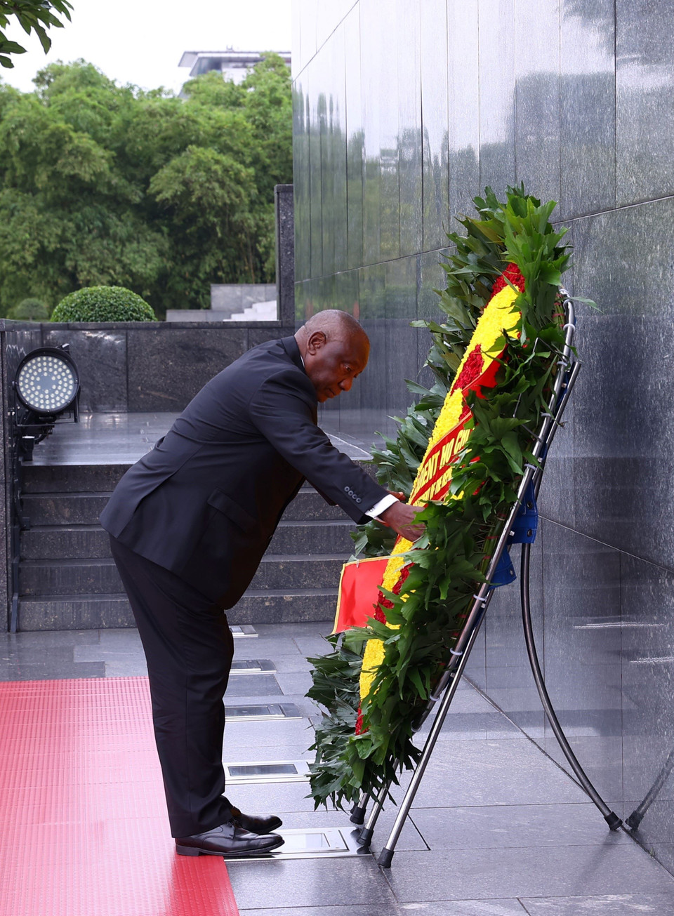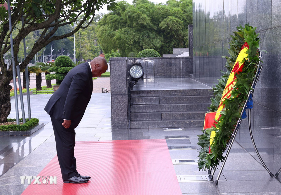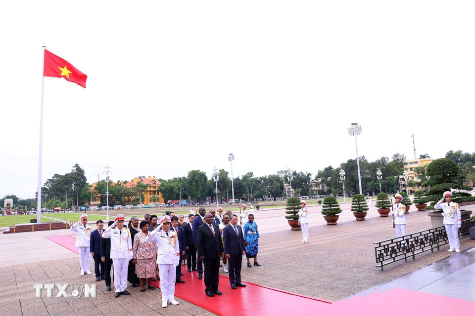 Tổng thống nước Cộng hòa Nam Phi Matamela Cyril Ramaphosa đặt hoa, vào Lăng viếng Chủ tịch Hồ Chí Minh. (Ảnh: Văn Điệp/TTXVN)