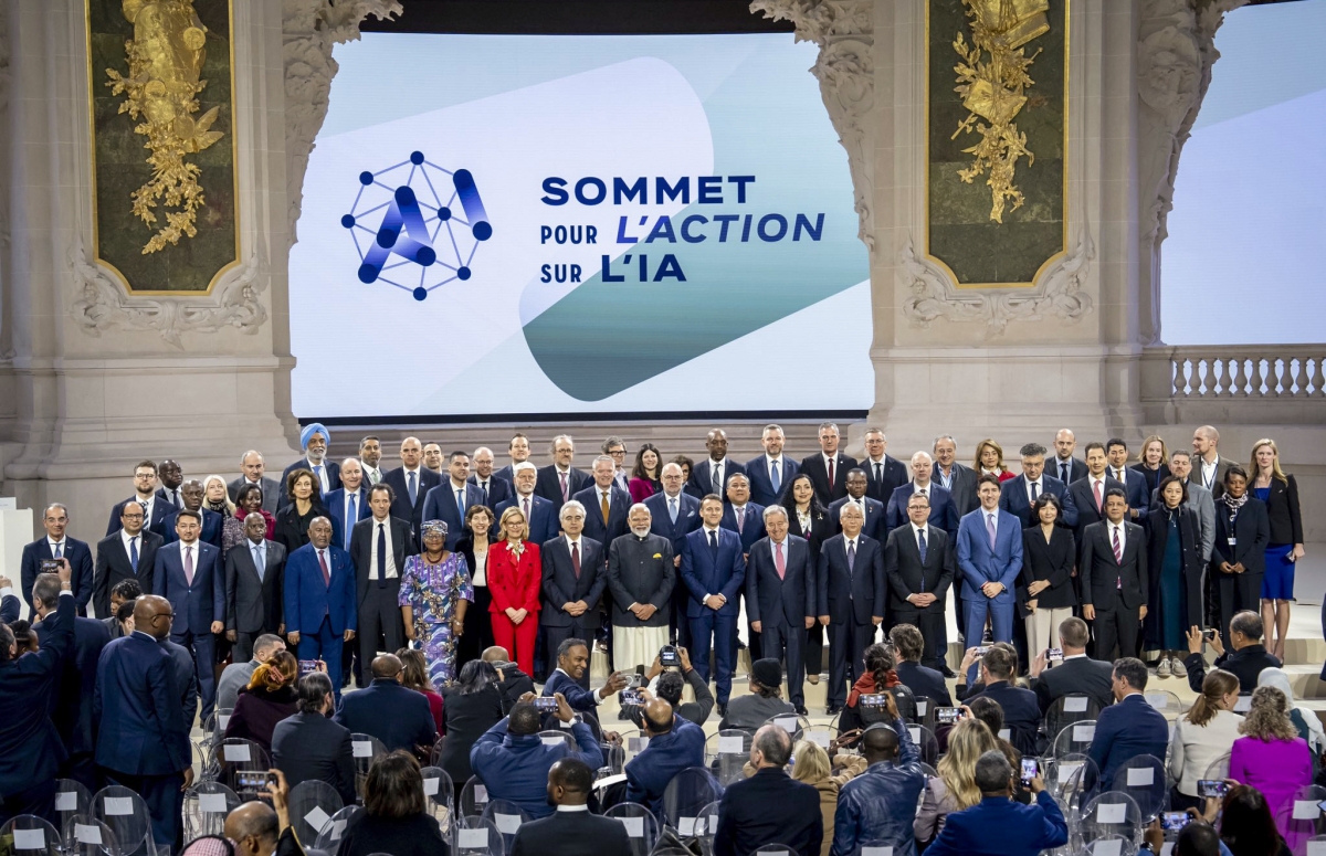 Tổng thống Pháp Emmanuel Macron và Thủ tướng Ấn Độ Narendra Modi chụp ảnh cùng các nhà lãnh đạo thế giới tại Hội nghị Thượng đỉnh Hành động Trí tuệ nhân tạo (AI) tại thủ đô Paris tháng 2/2025 (Ảnh: ANI)