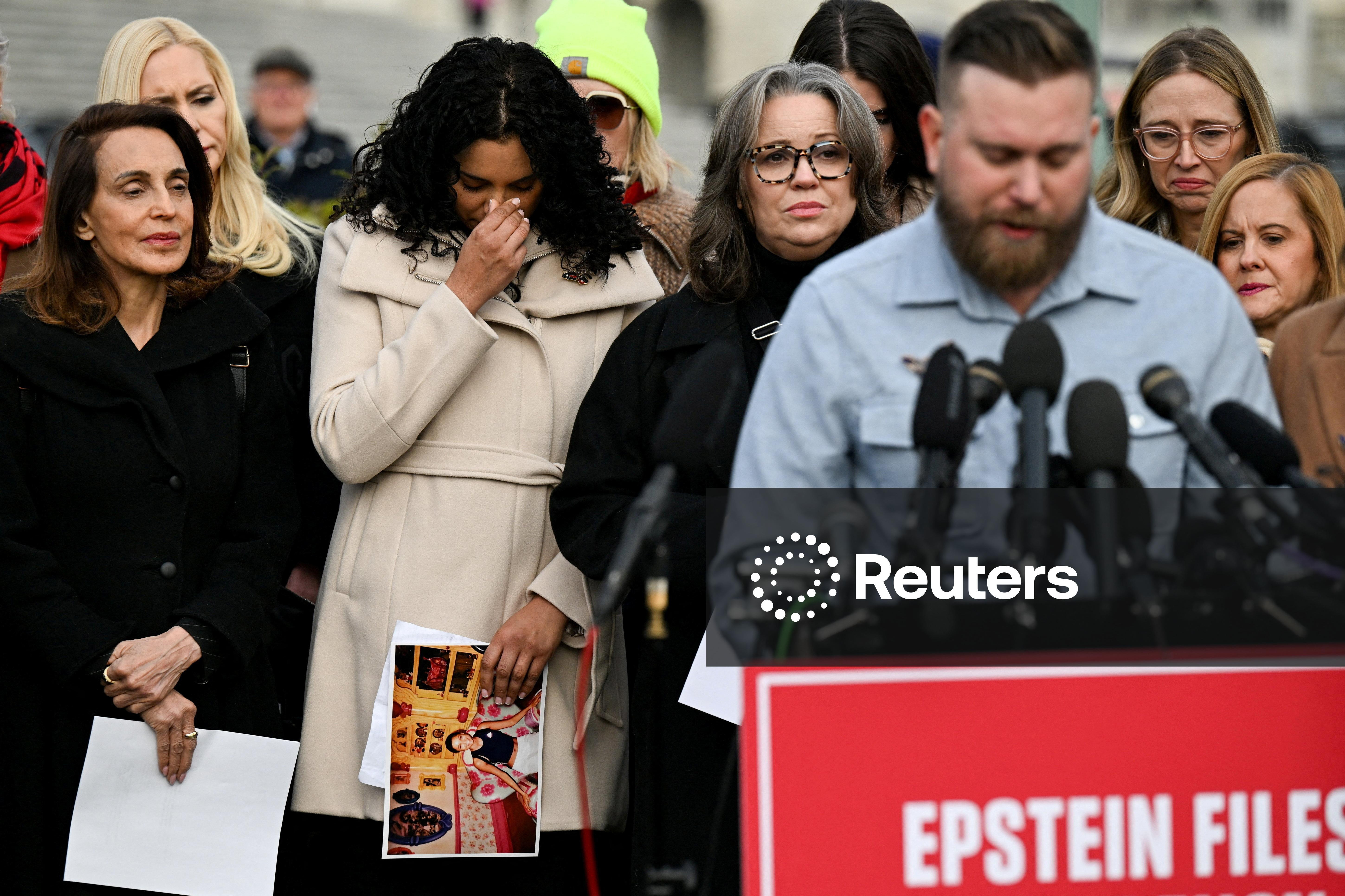 Người thân của nạn nhân phát biểu tại cuộc họp báo về Đạo luật Minh bạch Hồ sơ Epstein trước phiên bỏ phiếu của Hạ viện Mỹ, Washington D.C., ngày 18/11/2025. Ảnh: Reuters