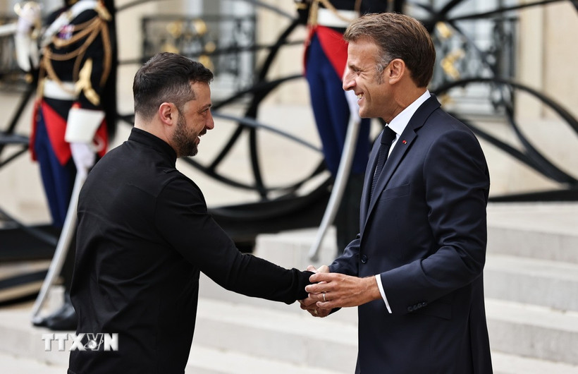 Tổng thống Pháp Emmanuel Macron và Tổng thống Ukraine Volodymyr Zelensky tại cuộc gặp ở Paris, Pháp, ngày 4/9/2025. (Ảnh: THX/TTXVN)