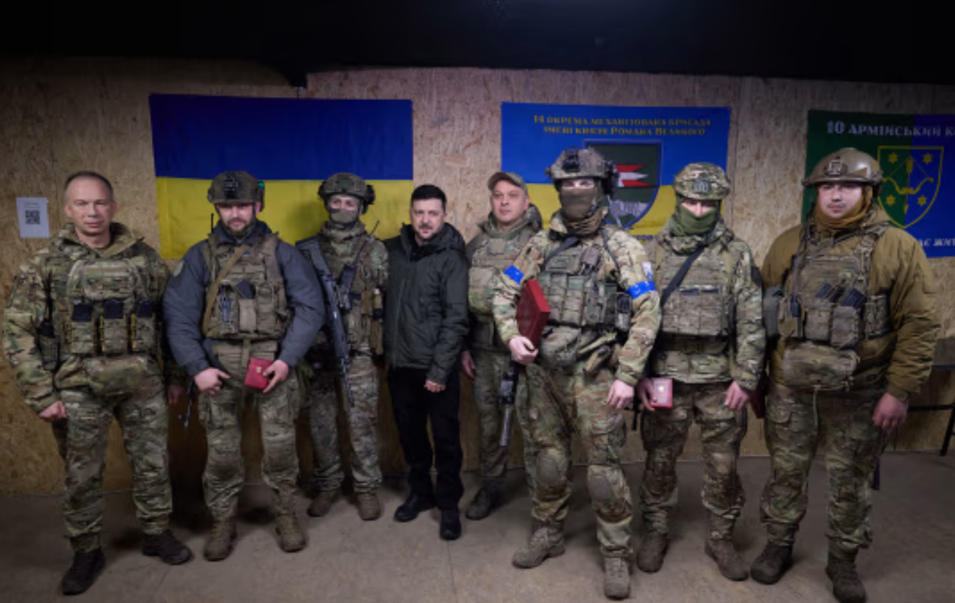 Tổng thống Ukraine Volodymyr Zelensky chụp ảnh cùng các binh sĩ ở Kupyansk. Ảnh: Văn phòng Báo chí Tổng thống Ukraine