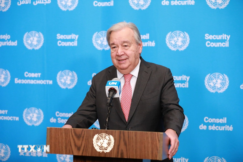 Tổng Thư ký Liên hợp quốc Antonio Guterres phát biểu với báo giới tại New York, Mỹ. (Ảnh: THX/TTXVN)