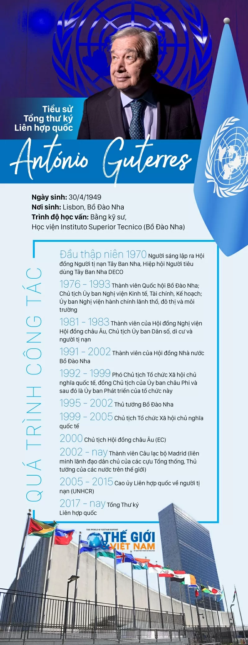 Tiểu sử Tổng thư ký Liên hợp quốc António Guterres. (Thiết kế: Anh Tuấn)