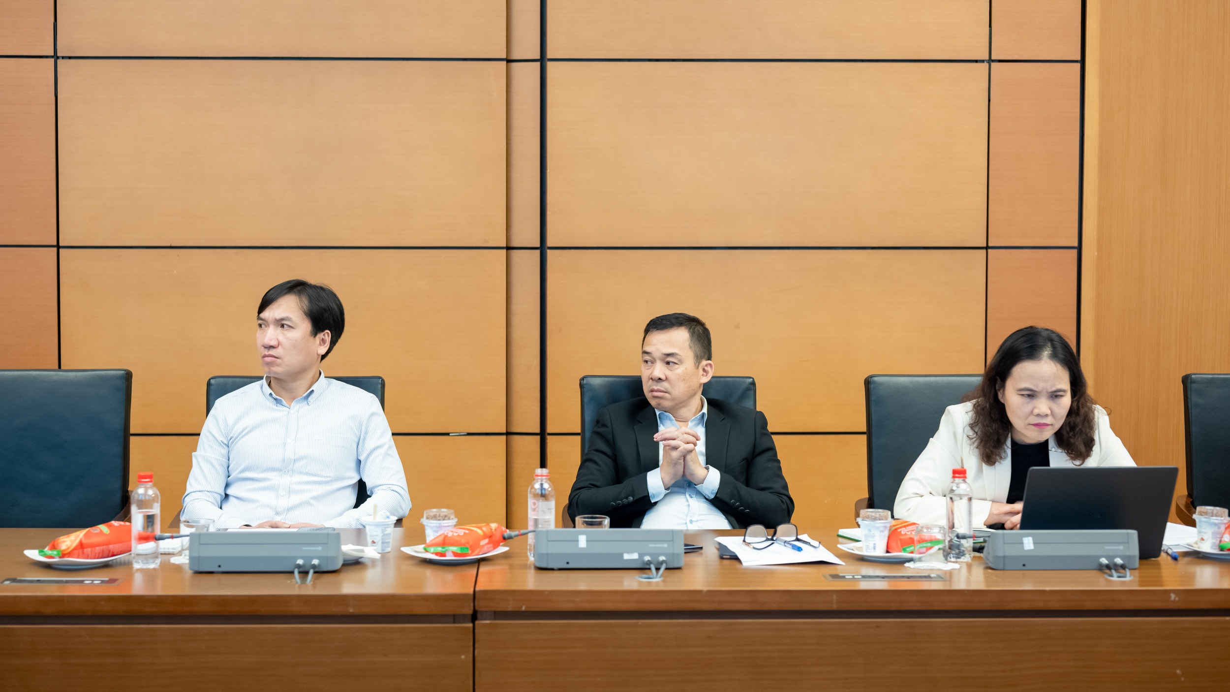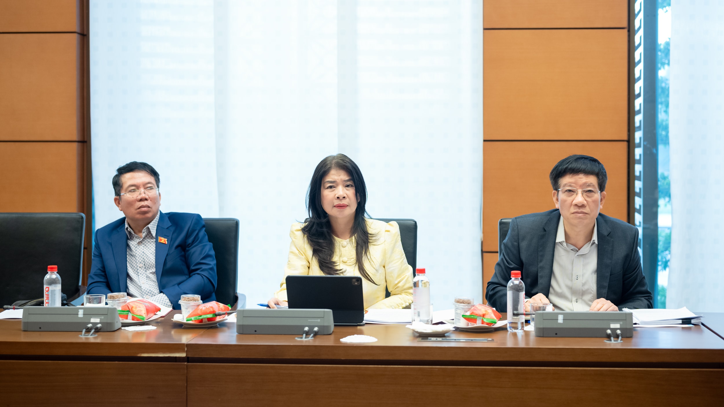Phó Chủ nhiệm Văn phòng Quốc hội Phạm Đình Toản, Phó Chủ nhiệm Văn phòng Quốc hội Lê Thu Hà, Phó Chủ nhiệm Văn phòng Quốc hội Nguyễn Văn Hiển tham dự cuộc họp