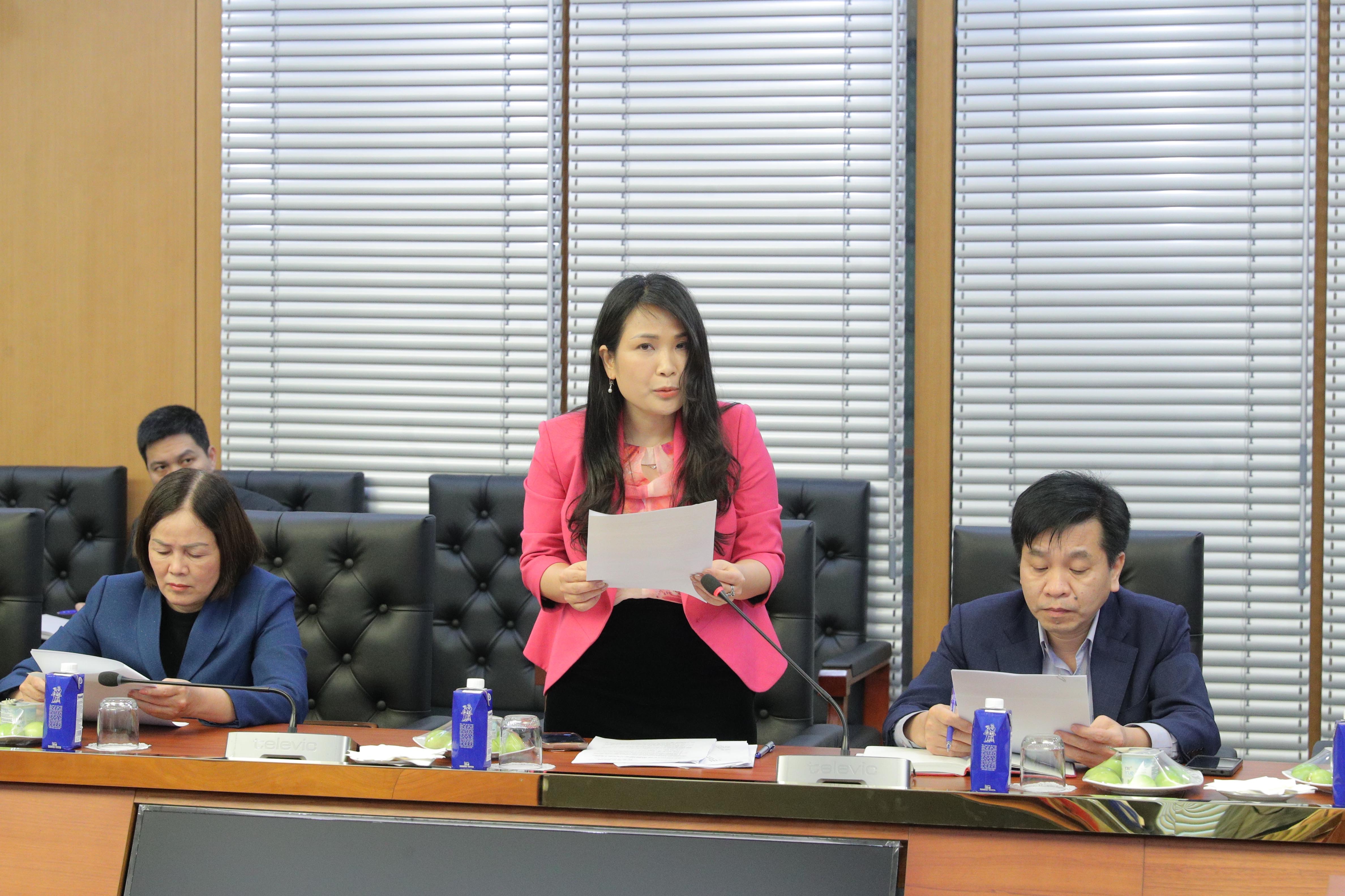 Phó Vụ trưởng Vụ Tổng hợp Nguyễn Thị Thơm báo cáo tại cuộc họp