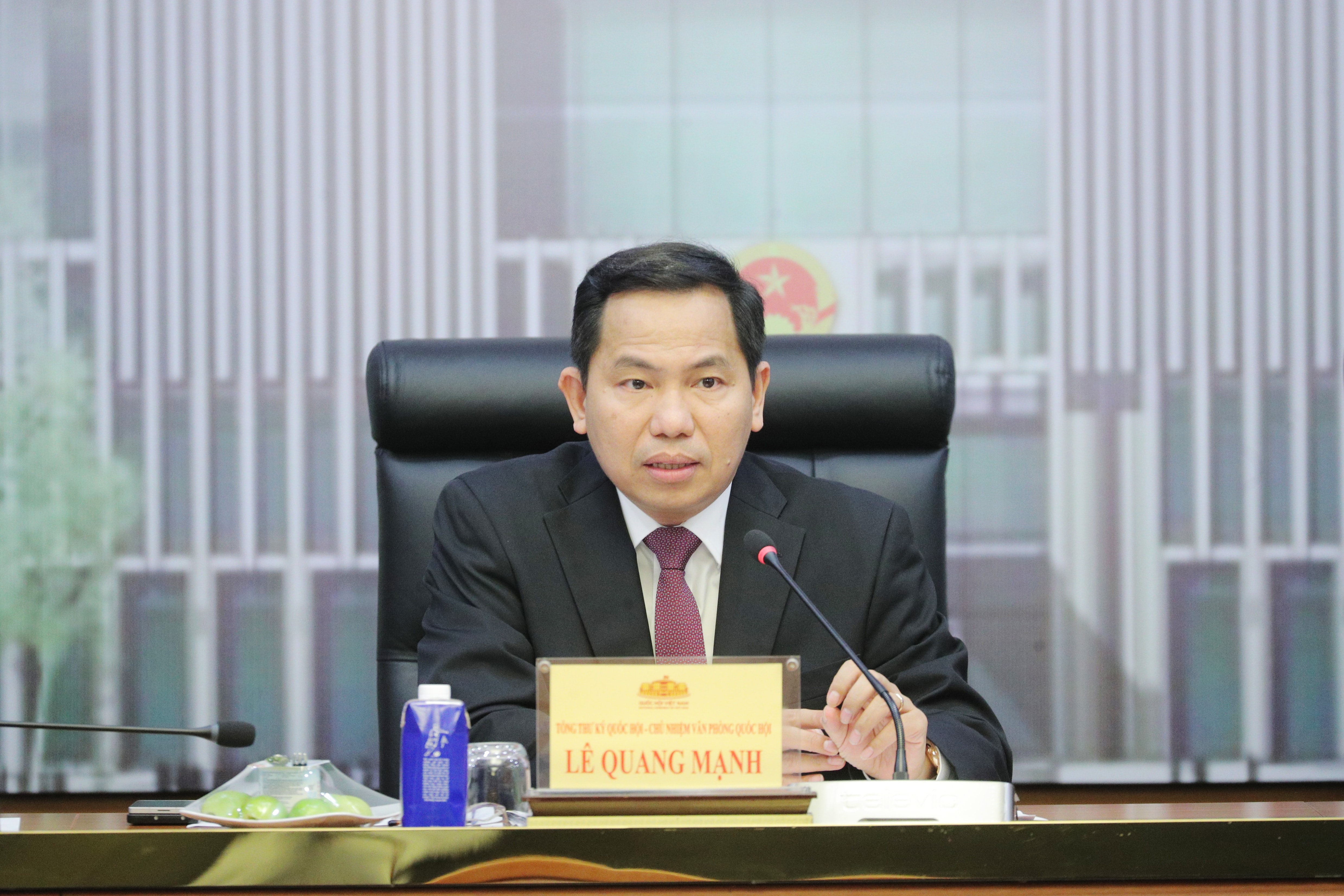 Tổng Thư ký Quốc hội, Chủ nhiệm Văn phòng Quốc hội Lê Quang Mạnh phát biểu tại cuộc họp
