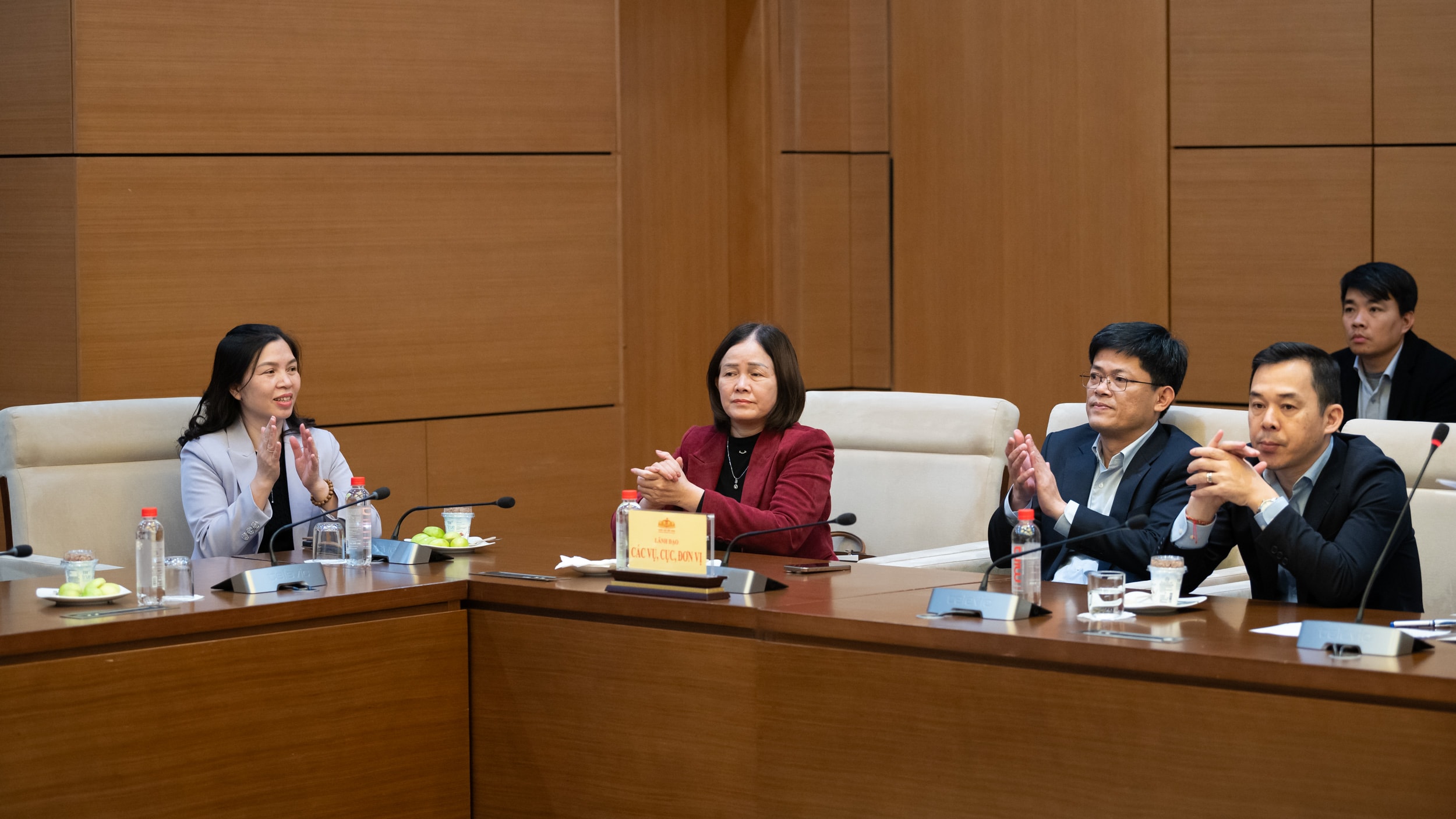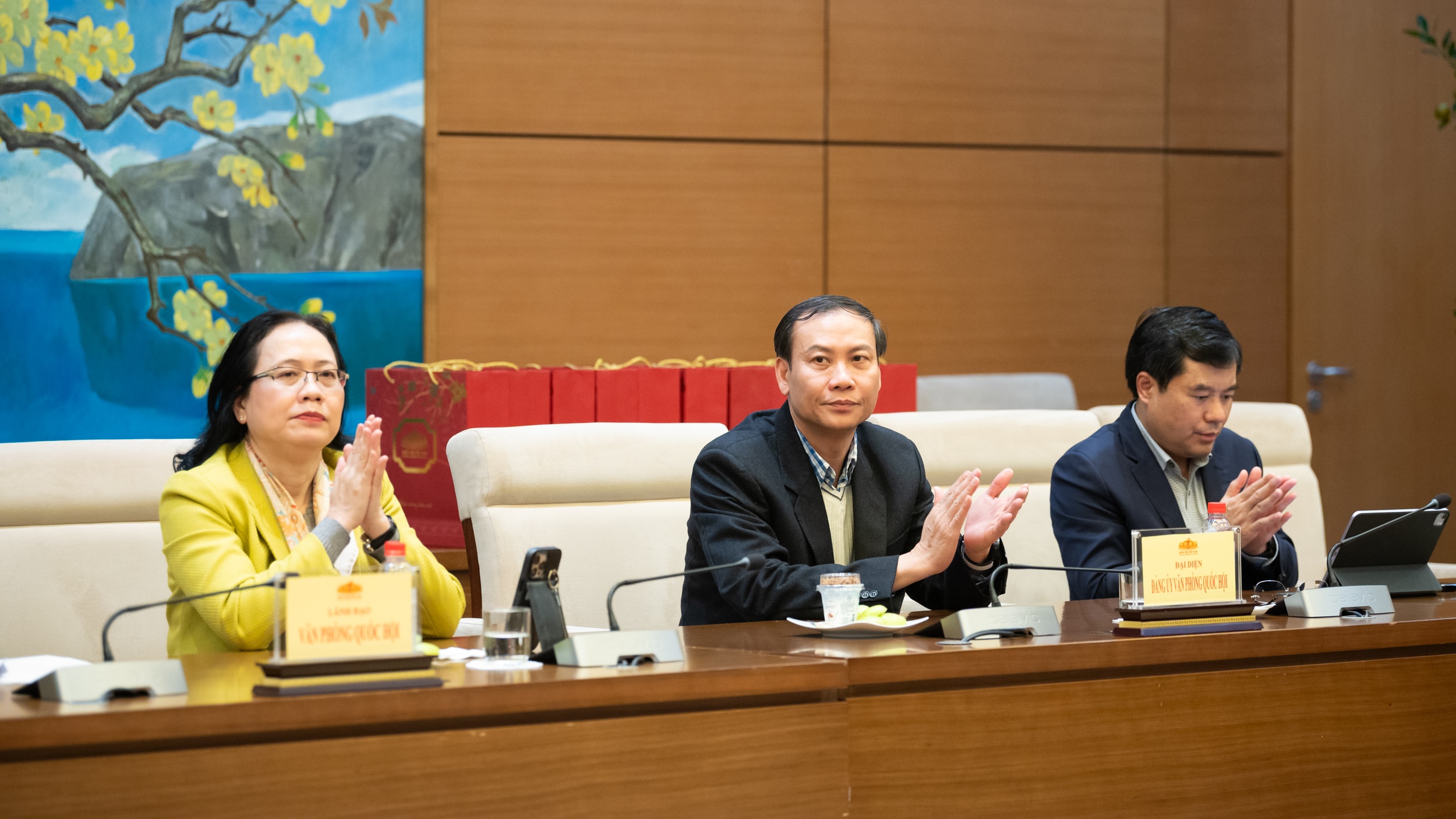 Tổng Thư ký Quốc hội, Chủ nhiệm Văn phòng Quốc hội Lê Quang Mạnh; các Phó Chủ nhiệm Văn phòng Quốc hội Phạm Đình Toản và Lê Thu Hà tham dự cuộc gặp mặt