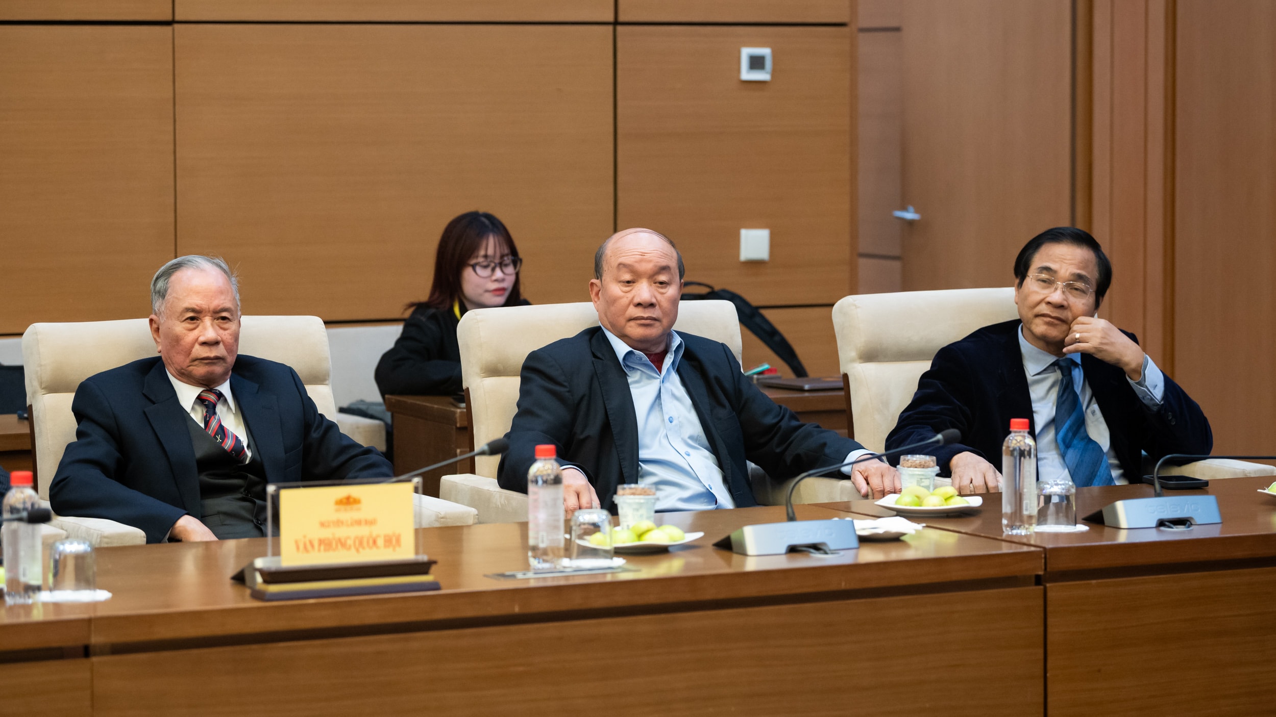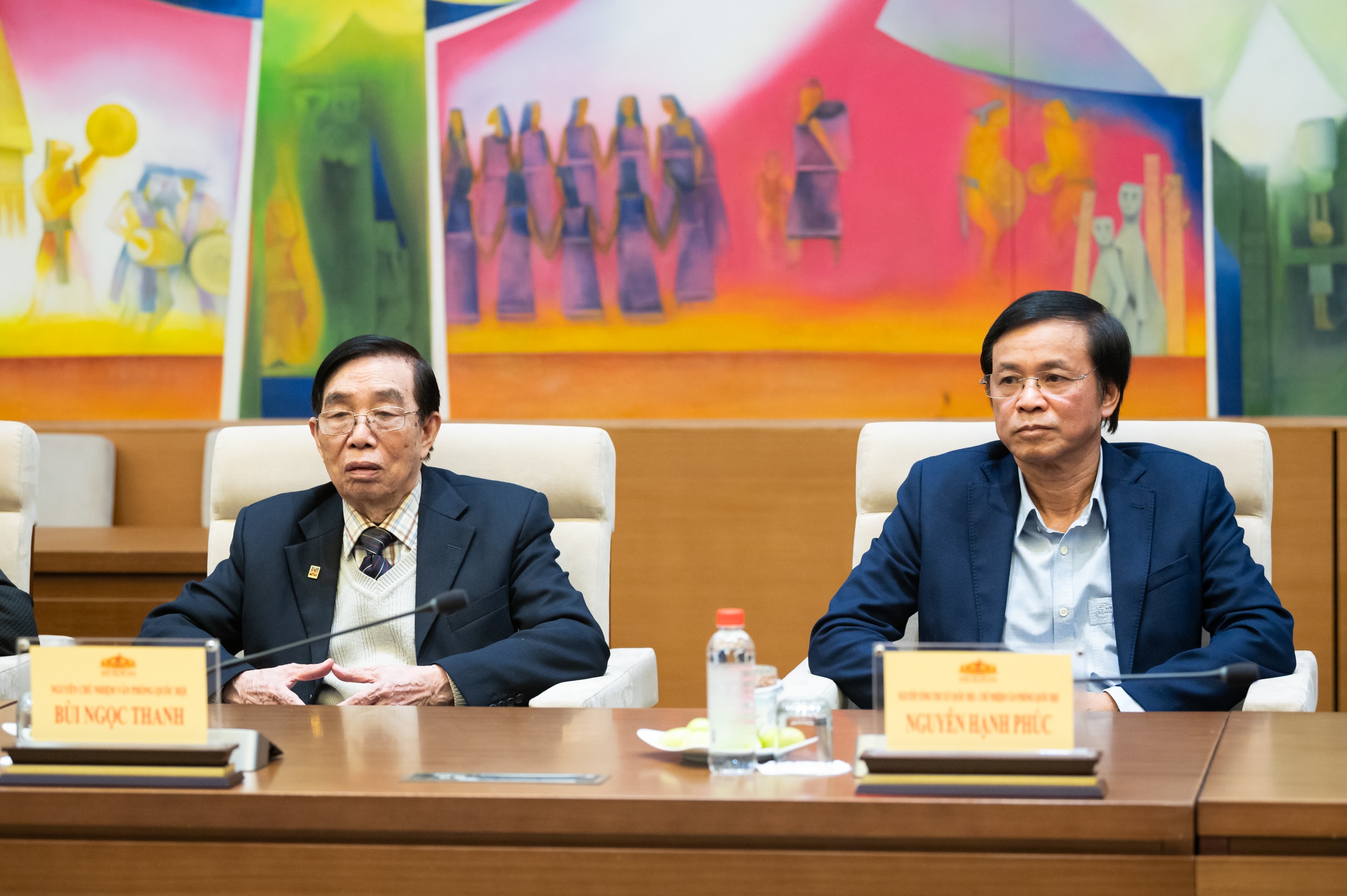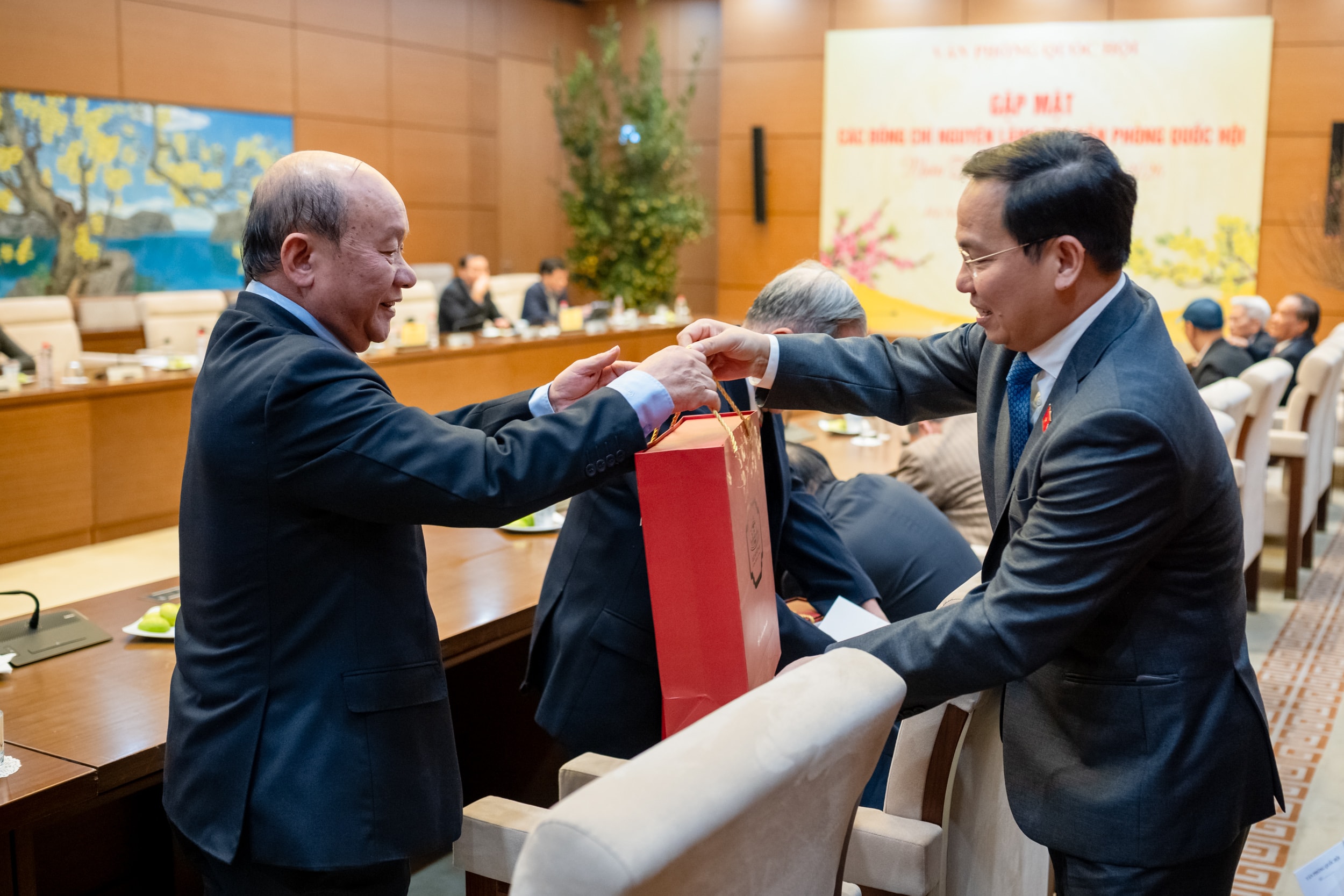 Nguyên Chủ nhiệm Văn phòng Quốc hội Bùi Ngọc Thanh và nguyên Tổng Thư ký Quốc hội, nguyên Chủ nhiệm Văn phòng Quốc hội Nguyễn Hạnh Phúc tham dự cuộc gặp mặt