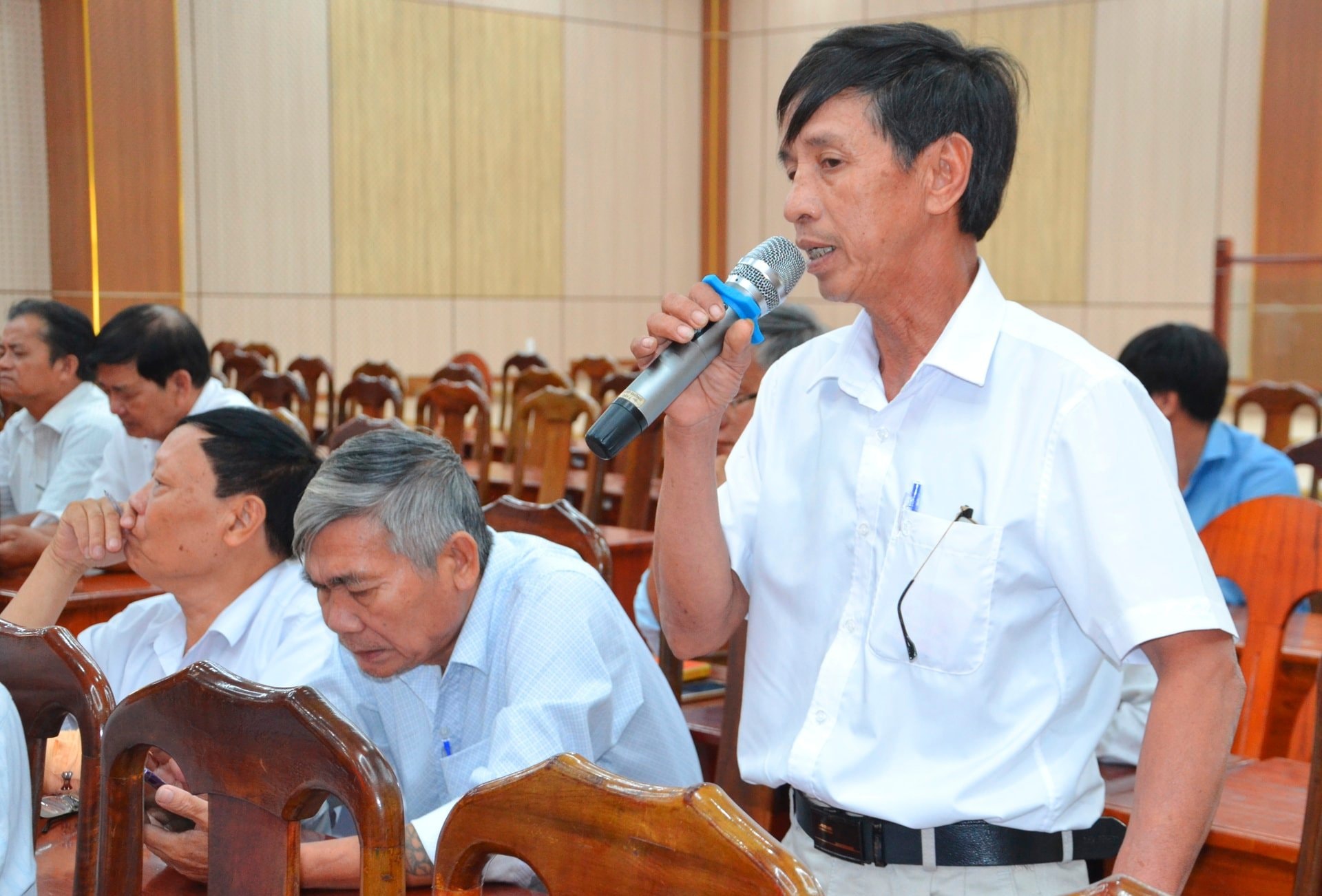 Đại diện Chi bộ thôn Liên Thuận góp ý tại hội nghị. Ảnh: KHẢI KHIÊM