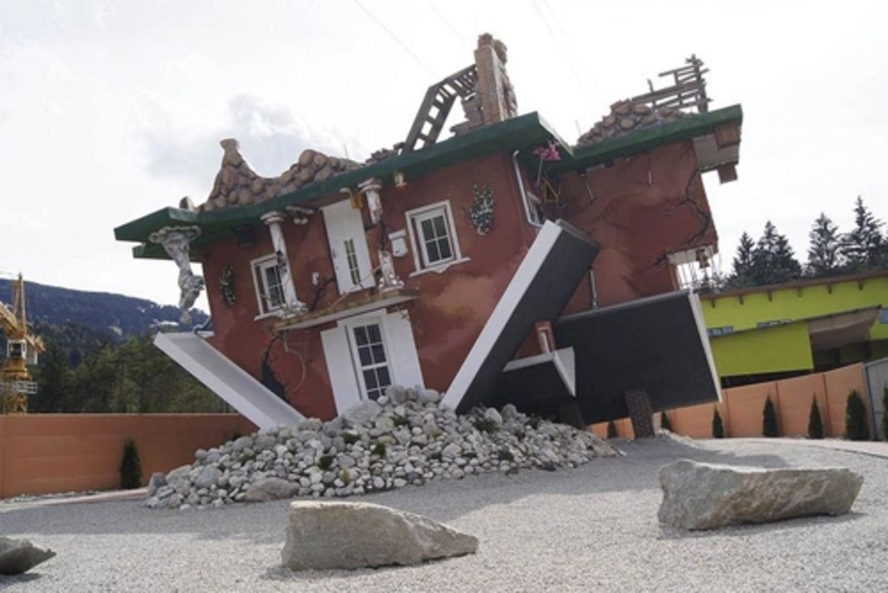 Mở cửa lần đầu tiên vào năm 2012, Haus steht Kopf nhanh chóng trở thành điểm tham quan thu hút du khách tại làng Tirol, Áo. Công trình gây ấn tượng bởi không gian bên trong được thiết kế đảo ngược, khi toàn bộ đồ nội thất được gắn cố định trên “trần nhà”. Nổi bật trong số đó là chiếc VW Beetle treo lơ lửng, tạo cảm giác như có thể rơi xuống “sàn nhà” bất cứ lúc nào, mang lại trải nghiệm thị giác độc đáo cho người tham quan.