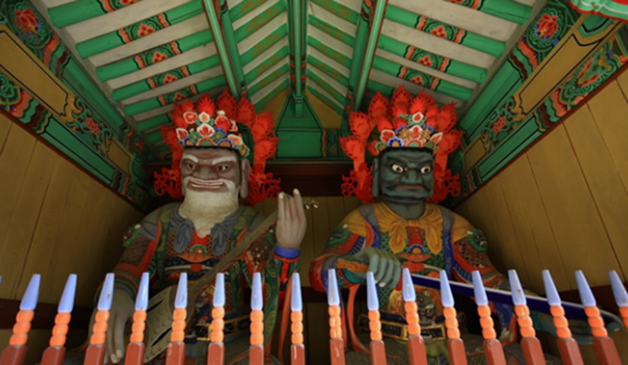Khu sân chính có 3 điện thờ, gồm 1 điện nhỏ đặt tượng Phật ngồi bằng đá từ thế kỷ IX (Bảo vật Hàn Quốc số 246). Điện Samseong-gak lưu giữ tranh Sanshin, Chilseong, Dokseong, còn Điện Myeongbu-jeon có tượng Jijang-bosal và Mười vị vua thế giới ngầm đầy uy nghiêm.