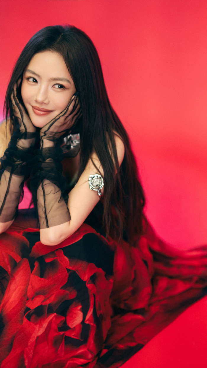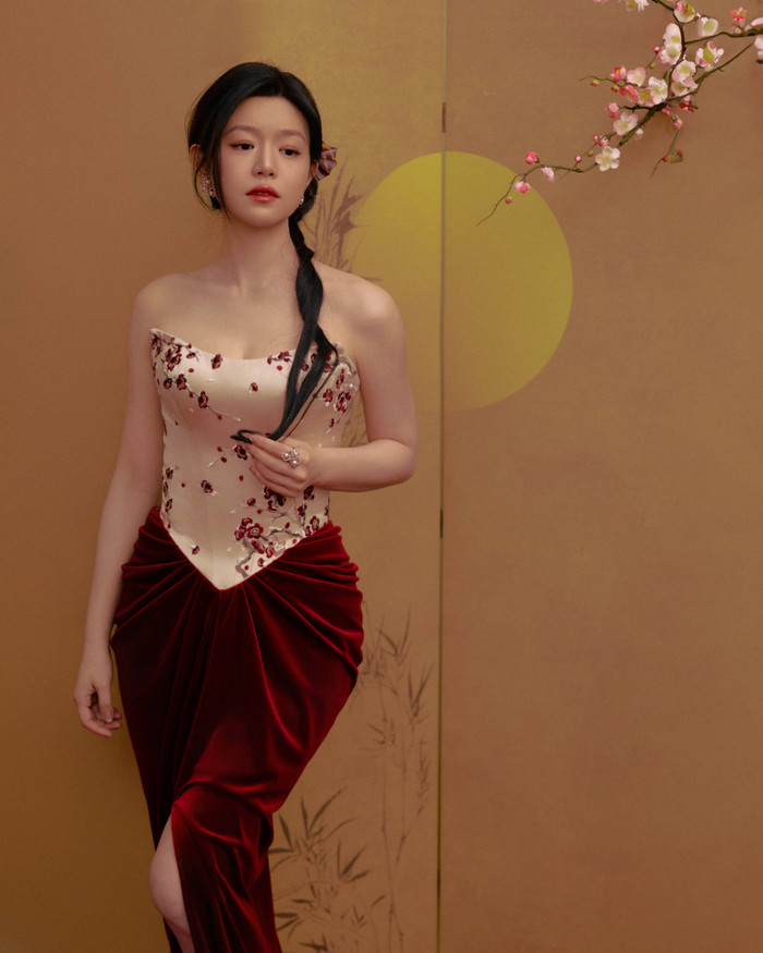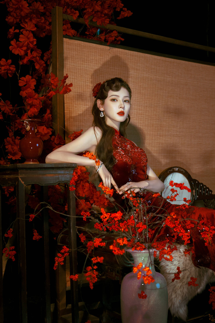Trong bảng xếp hạng mỹ nhân Hoa ngữ đầu năm 2026, Trương Dư Hi chọn lối thể hiện mang màu sắc hoài cổ. Sườn xám nhung đỏ kết hợp kiểu tóc cổ điển tạo nên hình ảnh vừa yêu kiều vừa sắc sảo. Lối trang điểm nhấn vào đường nét giúp visual của cô mang đậm chất điện ảnh, gợi liên tưởng đến những khung hình giàu cảm xúc.