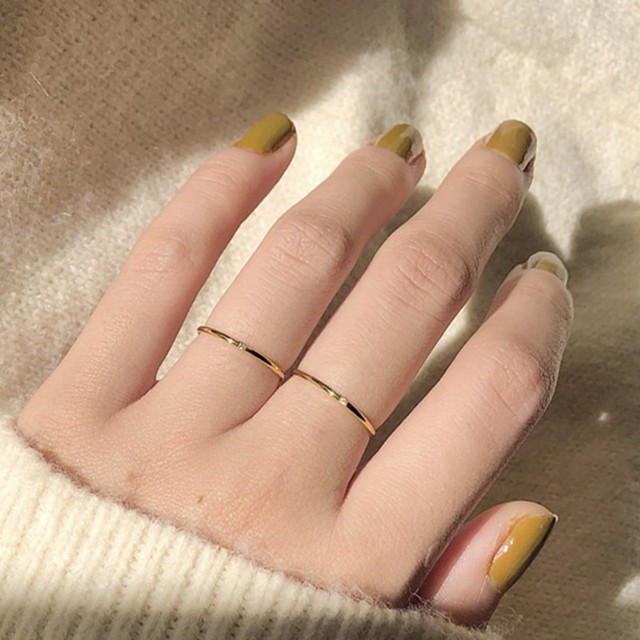 Thiết kế: Form nhẫn trơn mỏng, bản nhỏ bo tròn nhẹ tạo cảm giác thanh thoát và tối giản tuyệt đối. Dễ phối với mọi kiểu nhẫn khác và phù hợp đeo hằng ngày.