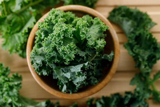 Một trong những “ngôi sao” của nhóm thực phẩm kiềm là cải kale. Loại rau xanh đậm này đứng đầu trong nhiều bảng xếp hạng dinh dưỡng nhờ chứa lượng vitamin K, C, canxi và chất chống oxy hóa dồi dào.