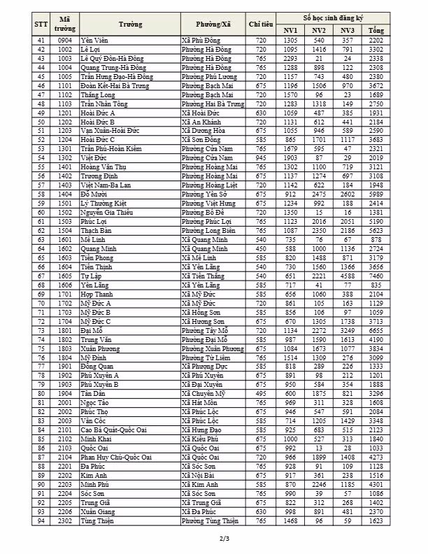 Đứng thứ 2 sau Trường THPT Yên Hòa là Trường THPT Lê Quý Đôn - Hà Đông với tỉ lệ chọi 1/3 khi tuyển 765 học sinh nhưng có tới 2.293 thí sinh đăng ký nguyện vọng 1.