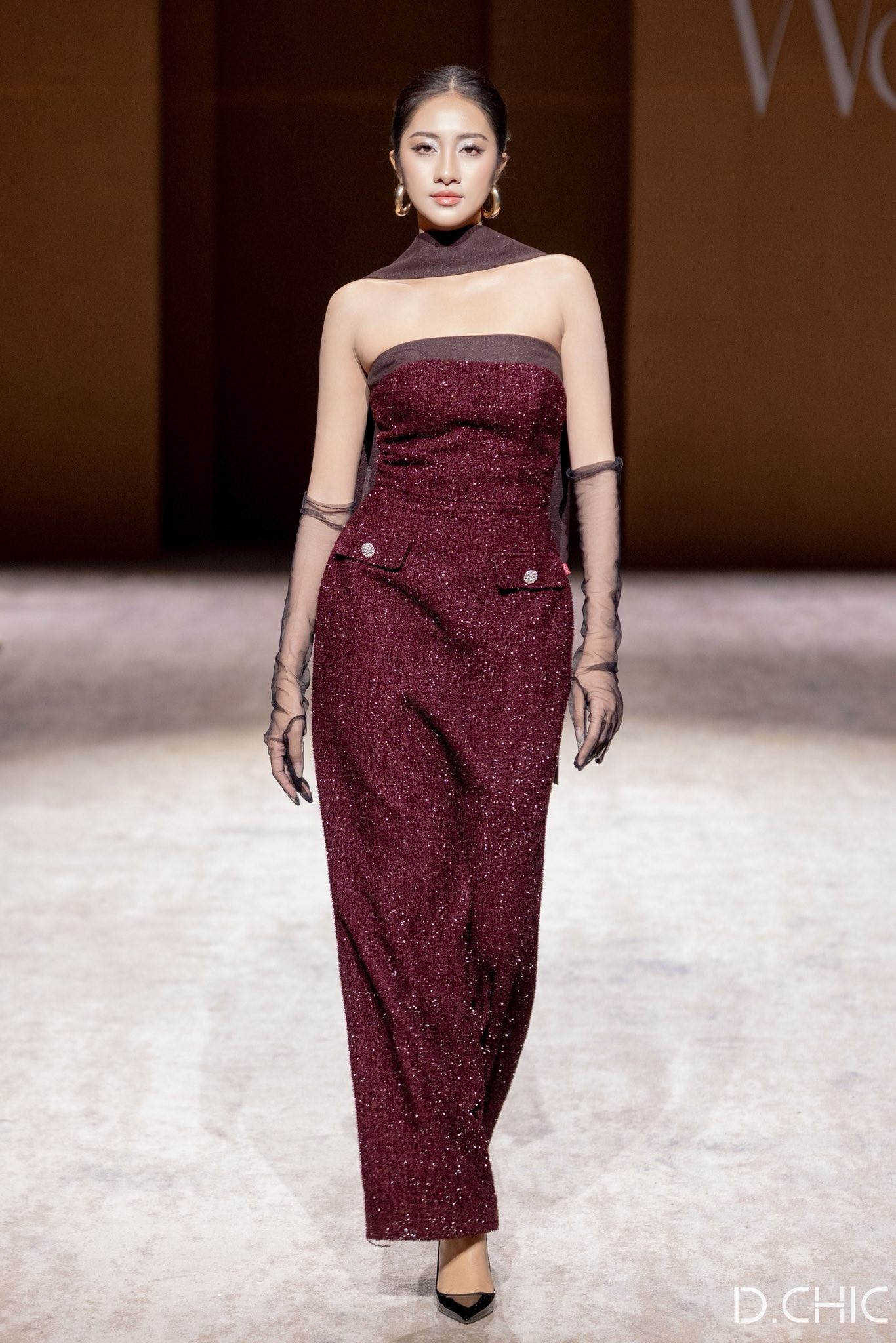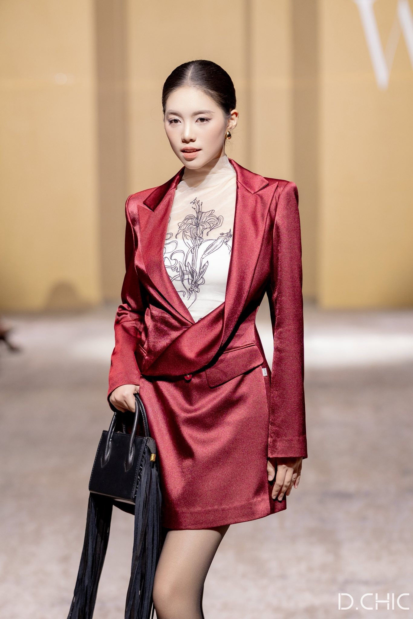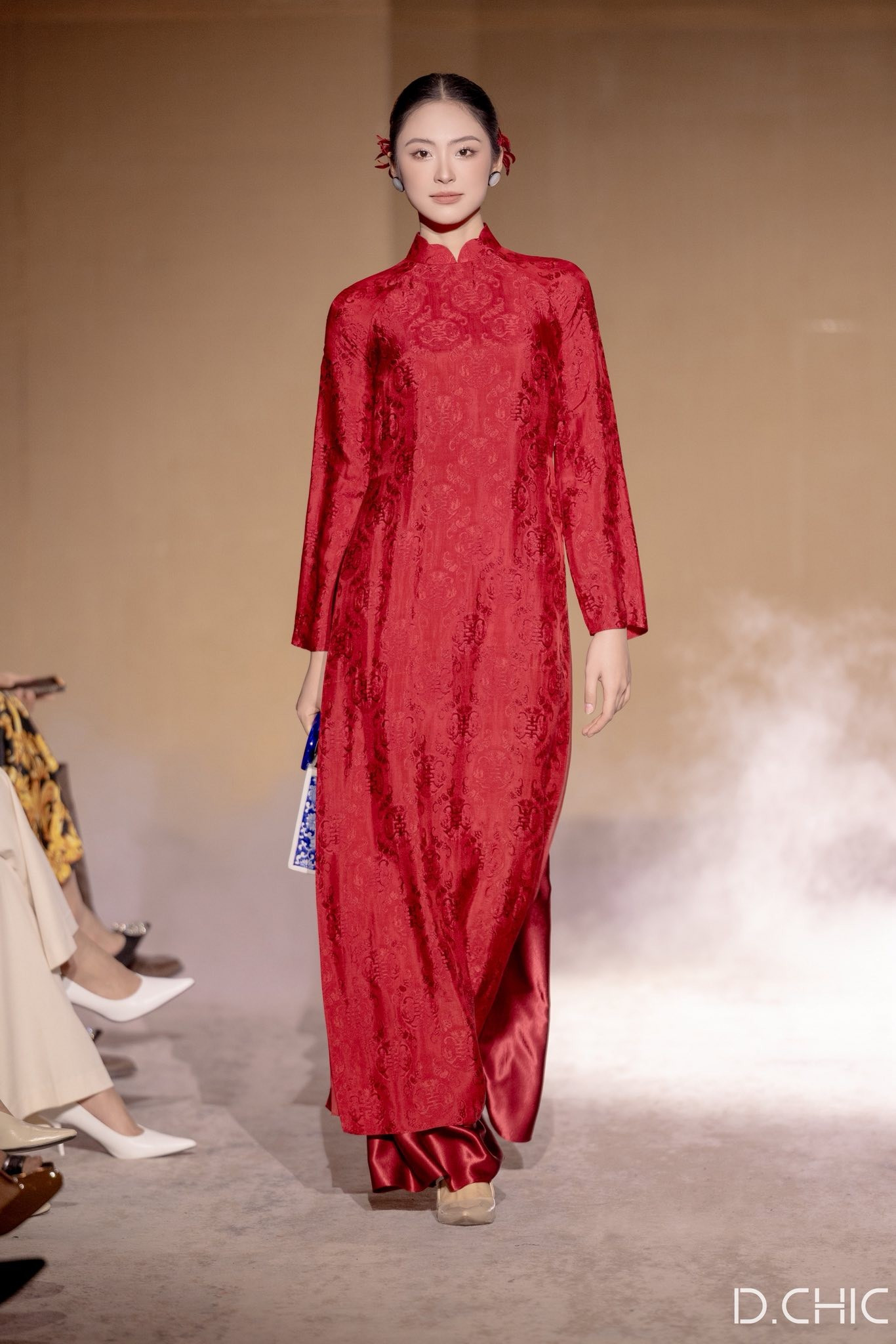 Xuất hiện tại show thời trang lần này, nàng hậu diện áo dài và thiết kế dạ hội tông đỏ cho mùa lễ hội cuối năm. Thần thái của Hà Trúc Linh trên các sàn runway ngày càng nhận được nhiều lời khen ngợi.