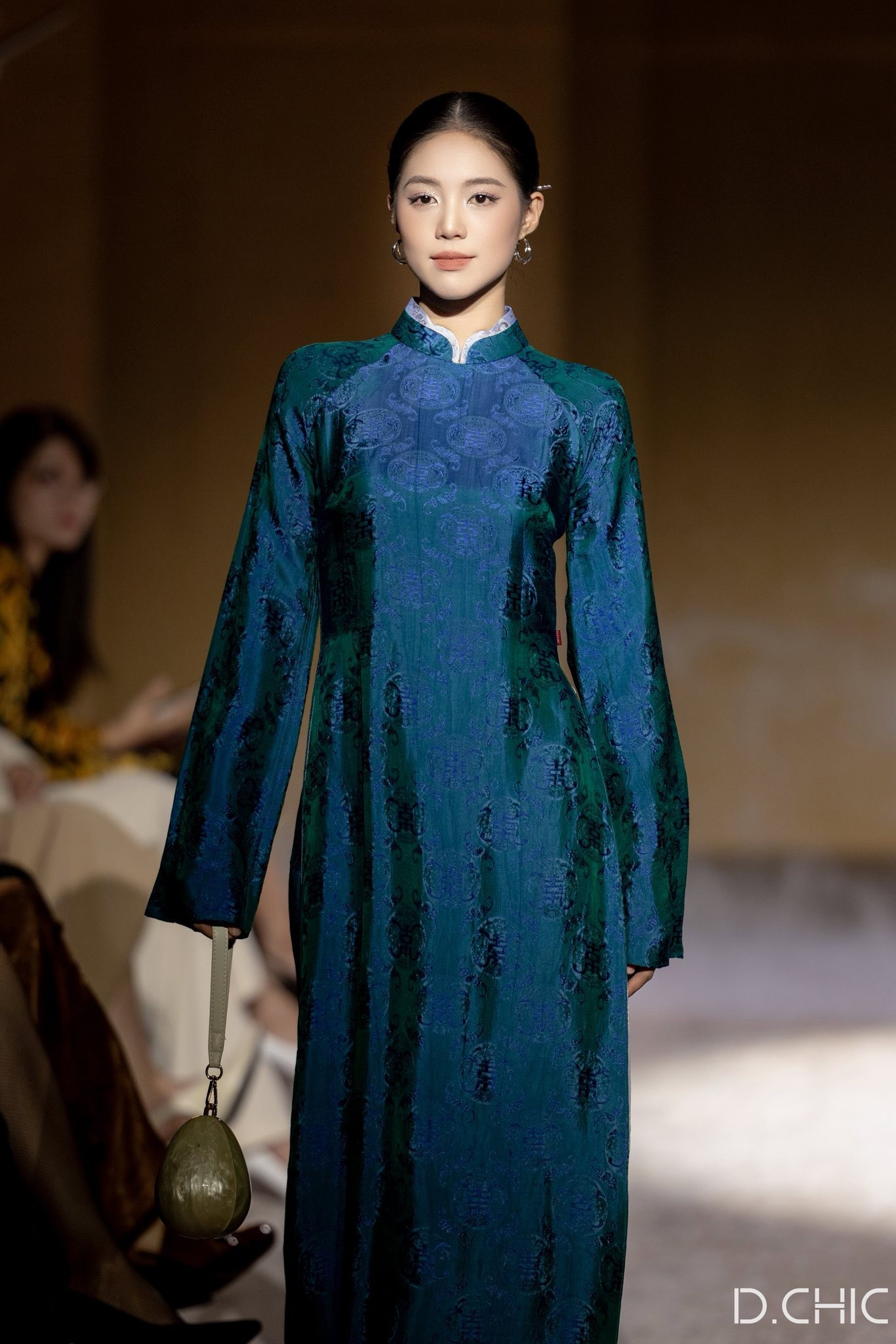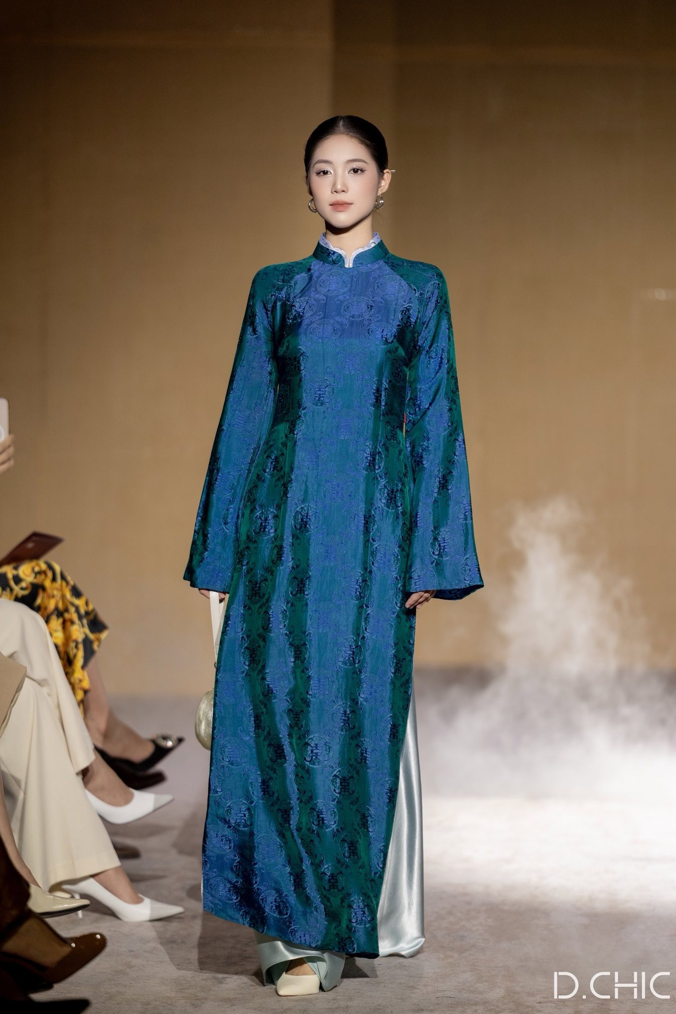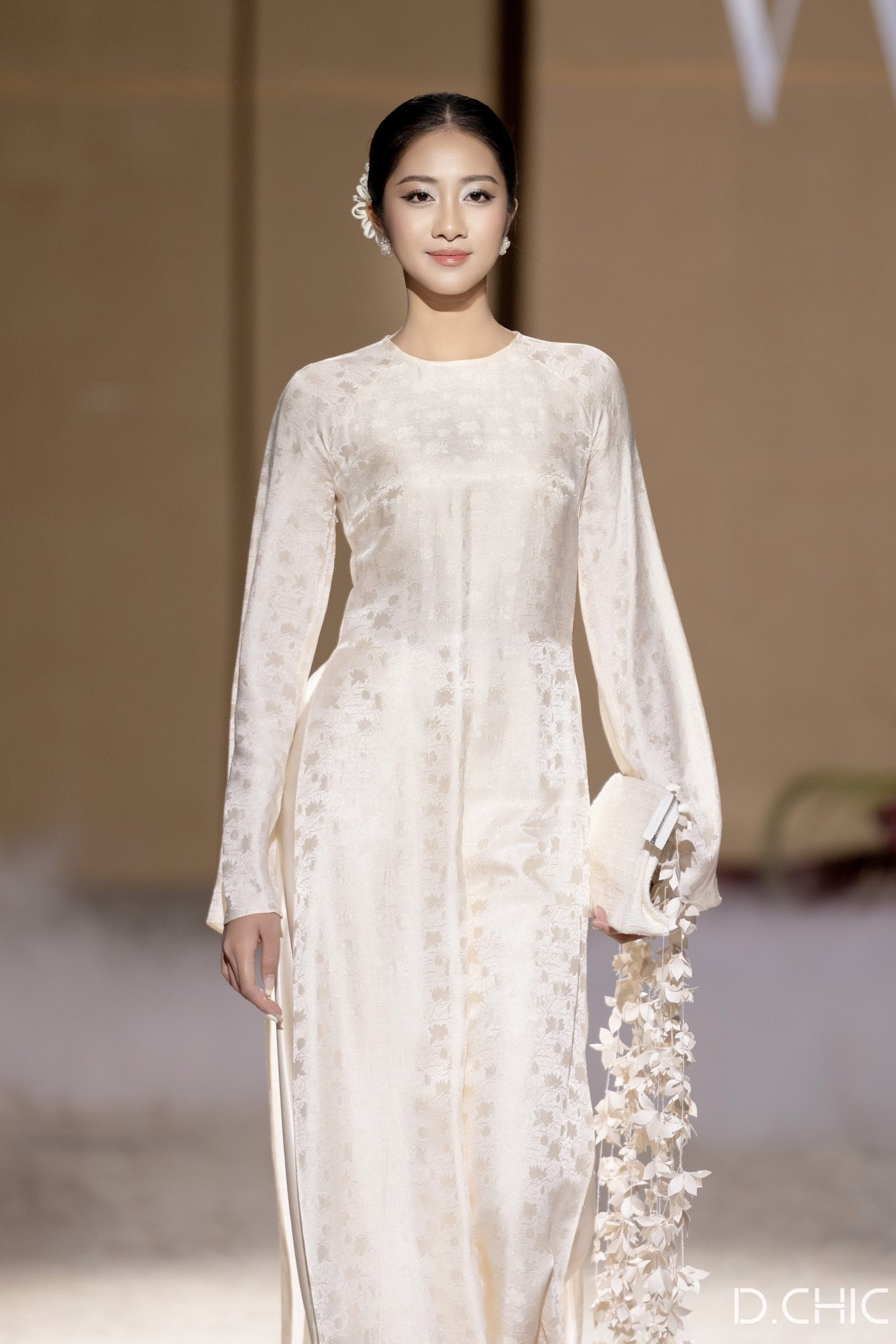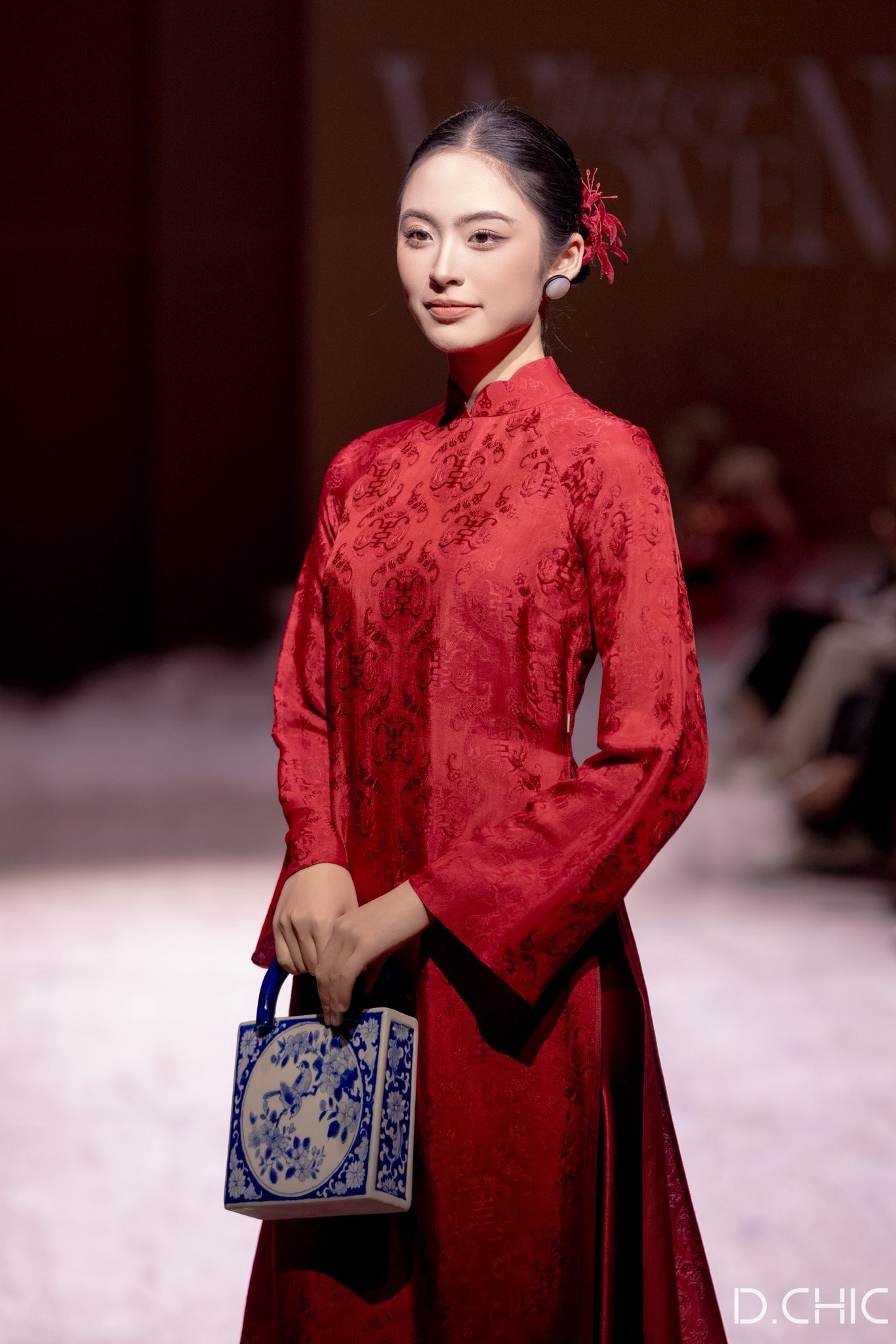 Xuất hiện tại show thời trang lần này, nàng hậu diện áo dài và thiết kế dạ hội tông đỏ cho mùa lễ hội cuối năm. Thần thái của Hà Trúc Linh trên các sàn runway ngày càng nhận được nhiều lời khen ngợi.