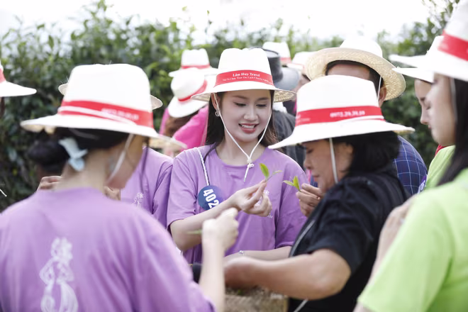 Tại đây, dàn người đẹp không chỉ hòa mình vào thiên nhiên, cùng bà con địa phương tìm hiểu và hái chè xanh, mà còn tham gia nhiều hoạt động quảng bá du lịch đặc sắc, góp phần lan tỏa hình ảnh vùng đất Mộc Châu – nơi nổi tiếng với những đồi chè bát ngát và cảnh sắc hữu tình bậc nhất Tây Bắc.