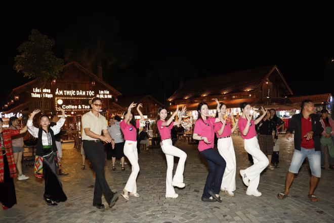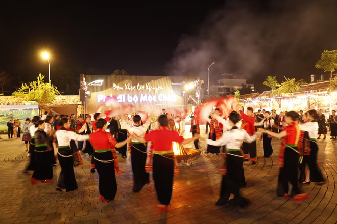 Sau một ngày sôi động, các thí sinh cùng hòa mình vào không khí lễ hội với thử thách nhảy sạp – một hoạt động văn hóa cộng đồng đặc sắc của người Thái, được du khách trong và ngoài nước yêu thích. Điệu nhảy sạp không chỉ mang đến tiếng cười, niềm vui, mà còn giúp gắn kết mọi người trong không khí rộn ràng, xua tan mệt mỏi. Ngay tại hoạt động này, các thí sinh đã trở thành những “đại sứ văn hóa” khi giao lưu, kết nối cùng du khách, góp phần quảng bá bản sắc Mộc Châu nói riêng và văn hóa Việt Nam nói chung.