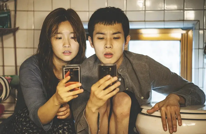 Gia đình Kim trong không gian sống chật chội, đối lập rõ nét với sự xa hoa của tầng lớp thượng lưu.