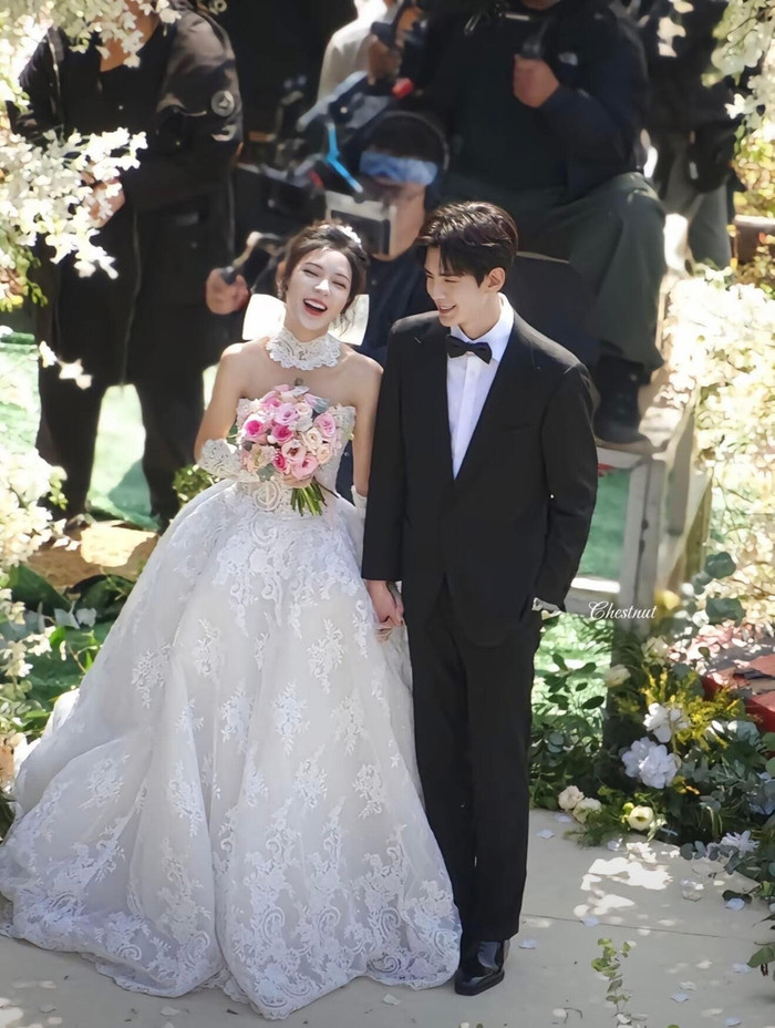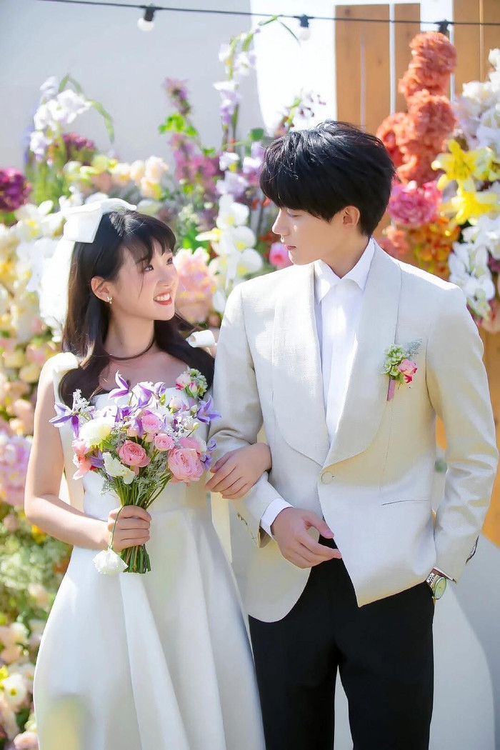 Trương Lăng Hách với chiều cao vượt trội và gương mặt thư sinh khi khoác lên mình bộ đồ chú rể đã tạo nên một hình ảnh vô cùng vững chãi. Đứng cạnh anh là Từ Nhược Hàm - nữ diễn viên sở hữu nét đẹp nhẹ nhàng, trong trẻo. Bộ ảnh cưới của họ được thực hiện với tông màu sáng, lấy bối cảnh ngoài trời đầy nắng và gió, gợi lên cảm giác về một tình yêu thuần khiết, chân thành. Sự chênh lệch chiều cao đáng yêu giữa hai diễn viên chính chính là vũ khí đốn tim khán giả, biến mỗi khung hình trở nên ngọt ngào như một giấc mơ thanh xuân.