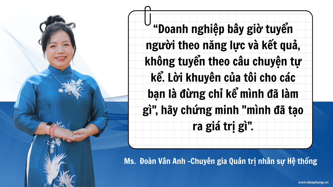 Thứ nhất, tiêu chuẩn tuyển dụng đã thay đổi rõ rệt. Trước đây, nhiều doanh nghiệp hài lòng với ứng viên "ngoan, chăm chỉ, bằng khá - giỏi". Hiện nay, doanh nghiệp hỏi thẳng: "Bạn đã từng chịu trách nhiệm đến cùng cho một kết quả cụ thể nào chưa?". Những kinh nghiệm kiểu làm bán thời gian vài tháng, tham gia câu lạc bộ cho vui, làm tự do lặt vặt... nếu không gắn với kết quả đo được thì chỉ là "trải nghiệm", chưa thành "năng lực". Doanh nghiệp không còn đánh giá theo cảm tính, họ dựa vào dữ liệu, chỉ số và minh chứng. Một câu chuyện hay không thể thay thế cho một kết quả thật.