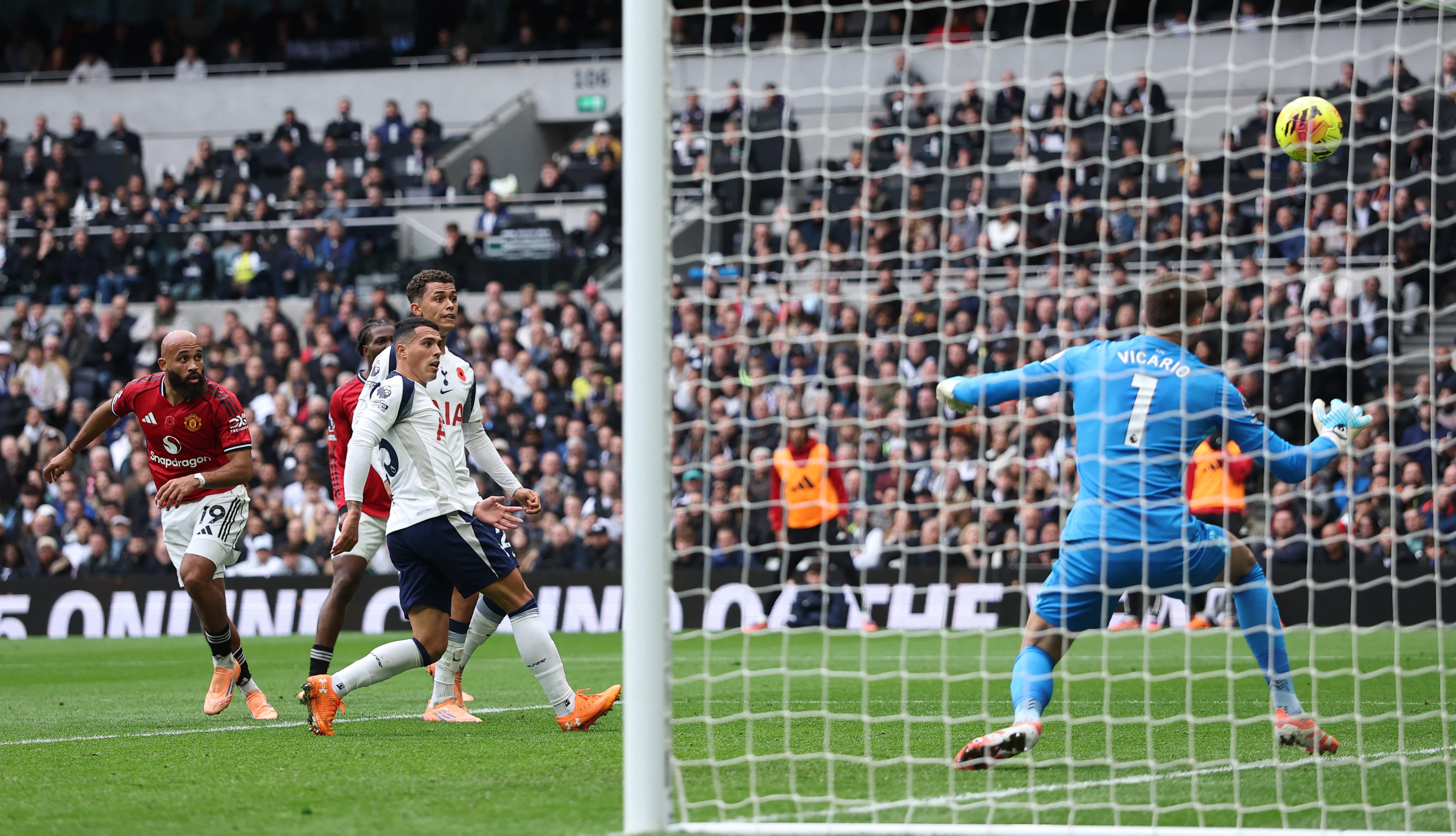 Tận dụng lợi thế tâm lý, Tottenham dồn ép MU và có bàn thắng thứ 2 ở phút 90+1. Cú sút xa của đồng đội đưa bóng trúng Richarlison, đổi hướng đi vào lưới khiến Lammnens bó tay.