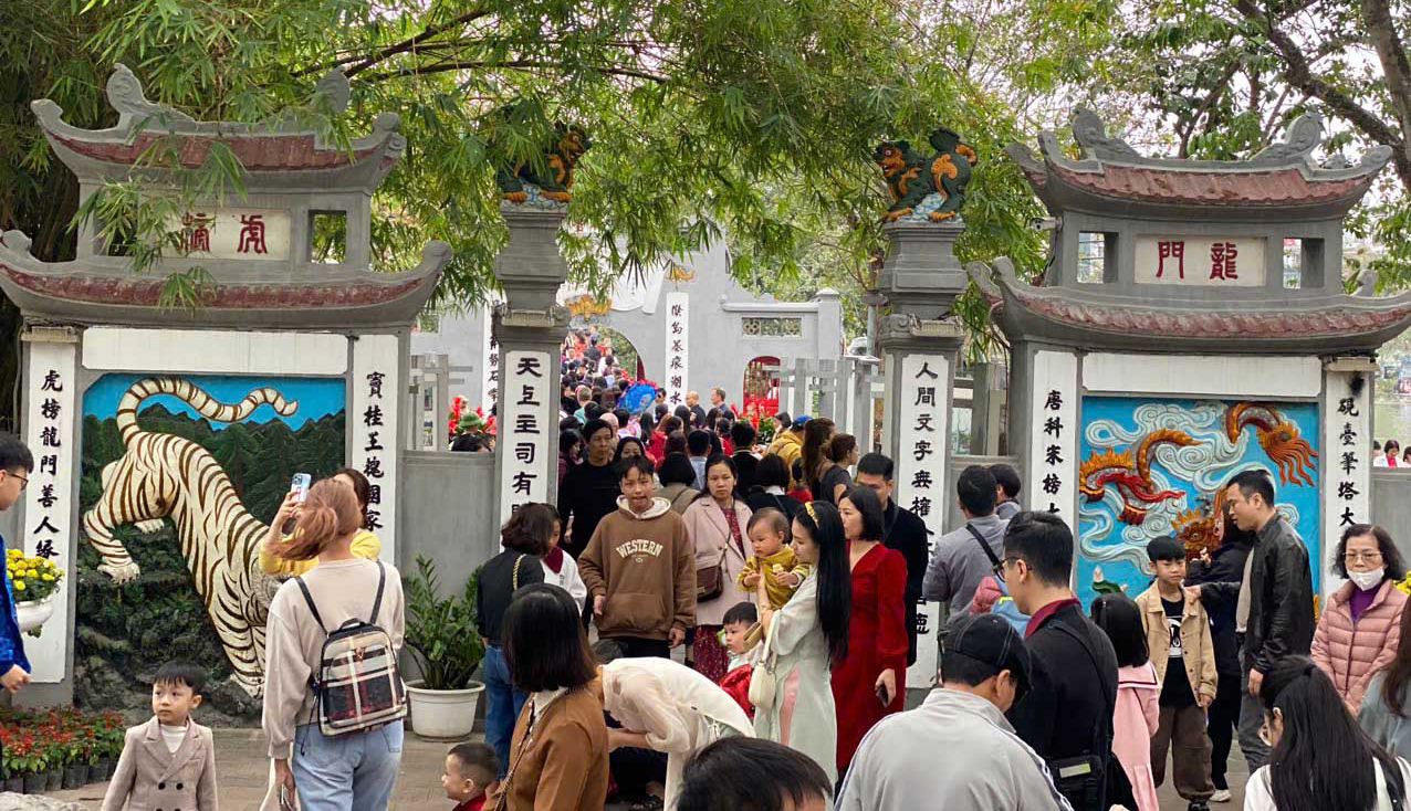 Du khách tại Hà Nội dịp Tết Nguyên đán Ất Tỵ 2025. Ảnh: Hạo Nhân