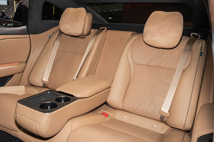 Tay nắm cửa ẩn một phần và mâm đa chấu đi cùng lốp 255/40R21 cũng xuất hiện trên xe. Phần nóc được thiết kế bo tròn và vuốt về phần cốp sau ngắn gọn. Tại đây, xe được trang bị cụm đèn hậu nối liền với nhau làm nổi bật bề ngang và cánh gió nhỏ kiểu “đuôi vịt”. Trên nóc còn có cảm biến LiDAR hỗ trợ các giải pháp lái xe tự động tiên tiến của Momenta.