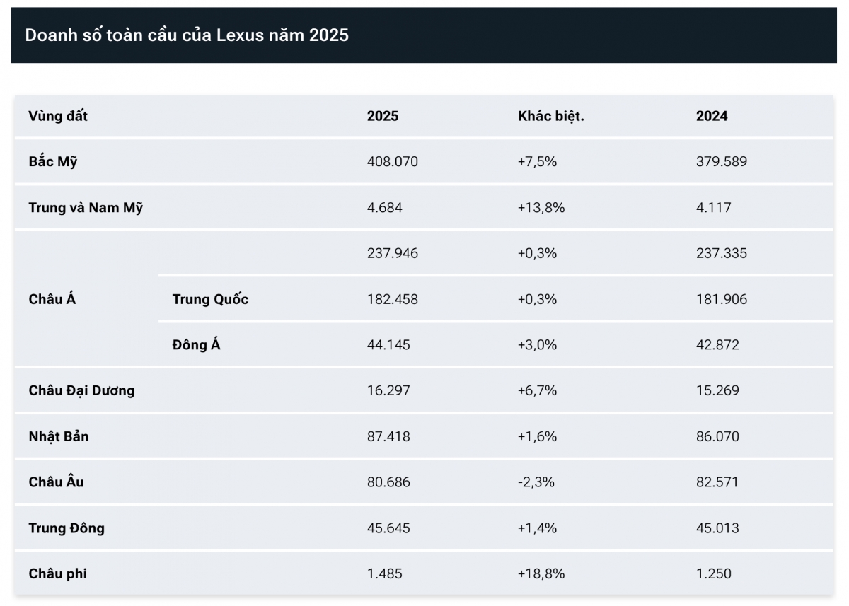 Châu Á vẫn là thị trường quan trọng nhất của Toyota. Năm ngoái, công ty đã bán được 3,285 triệu xe trên toàn khu vực, tăng 2,2% so với năm 2024. Tại Trung Quốc, thị trường ô tô lớn nhất thế giới, doanh số bán hàng tăng nhẹ 0,2% lên 1,78 triệu chiếc. Sự tăng trưởng khiêm tốn này được hỗ trợ bởi việc ra mắt hai mẫu xe điện, bZ3X và bZ5.