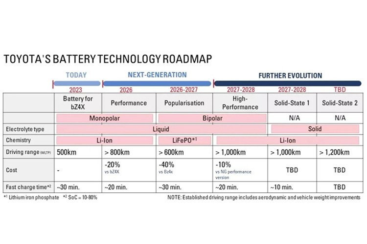 Từ năm 2021, Toyota đã hợp tác với Sumitomo Metal Mining, doanh nghiệp khai khoáng hàng đầu Nhật Bản, để phát triển vật liệu cực dương (cathode) cho loại pin thế hệ mới. Khác với pin lithium-ion truyền thống, pin thể rắn sử dụng chất điện phân rắn, giúp tăng mật độ năng lượng, giảm trọng lượng, rút ngắn thời gian sạc và giảm nguy cơ cháy nổ. Nhờ đó, pin có thể đạt hiệu suất cao hơn nhiều so với các công nghệ hiện tại.