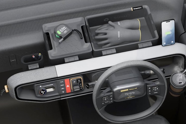 Toyota cũng tận dụng mặt trên táp-lô làm khu vực chứa các khay để đồ tiện dụng. Thậm chí xe còn có cả chỗ cắm sạc điện thoại với mục tiêu giúp người lái đọc các thông báo trên màn hình dễ dàng hơn hoặc sử dụng smartphone như màn hình phụ.