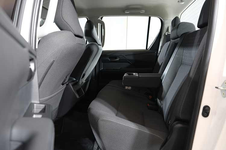 Xe cũng được bổ sung bậc lên xuống phía sau, cải thiện khả năng tiếp cận thùng xe, cùng tính năng hỗ trợ đóng/mở cửa thùng bằng điện trên các phiên bản cao. Bước vào cabin, người dùng sẽ choáng ngợp trước không gian nội thất mang hơi thở của dòng Land Cruiser huyền thoại.