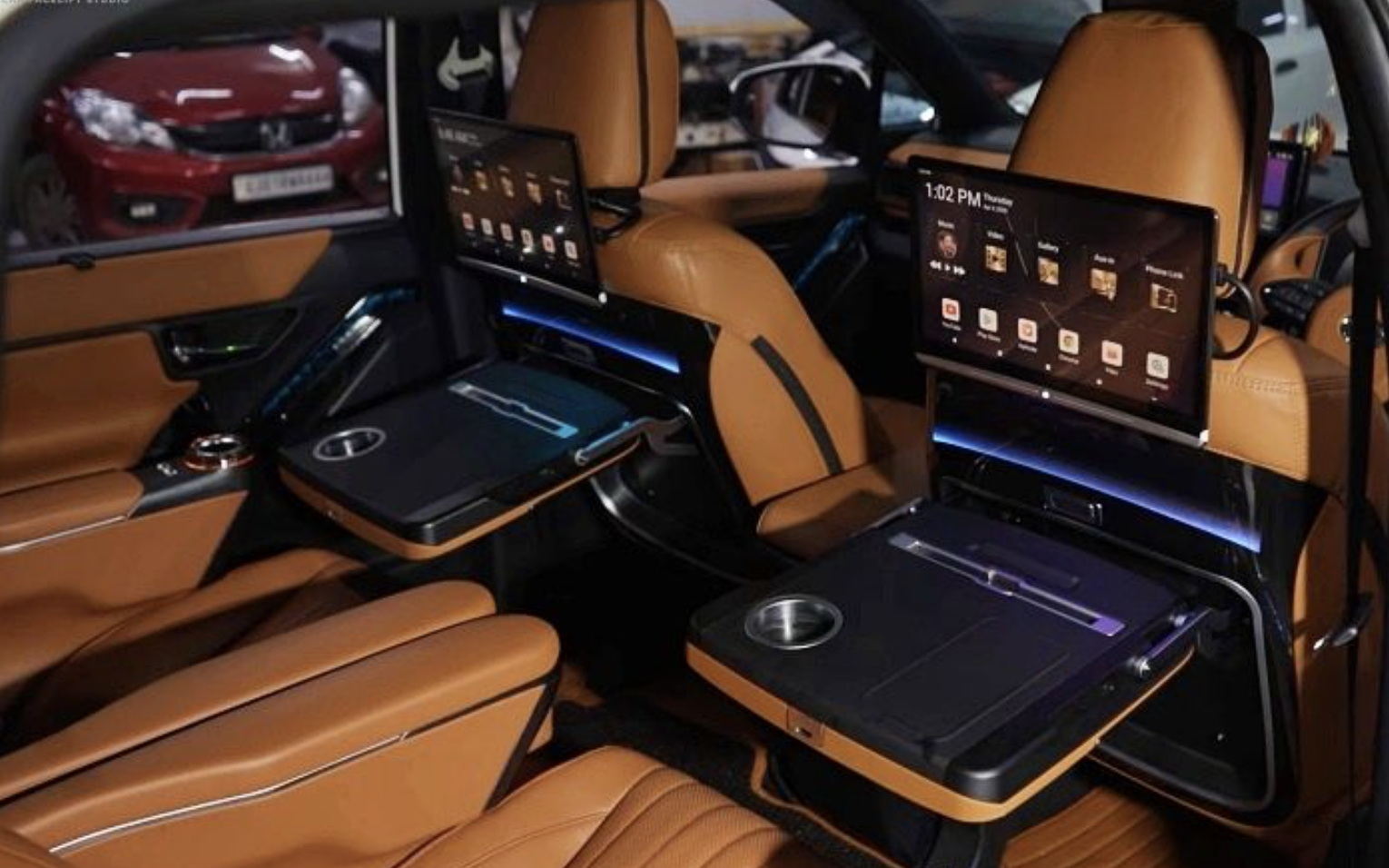 Bên trong khoang xe, hàng ghế giữa nguyên bản được thay bằng ghế lounge nhập khẩu, có khả năng ngả lưng, sưởi, làm mát và massage. Phía sau lưng ghế trước tích hợp màn hình giải trí riêng cho hành khách.