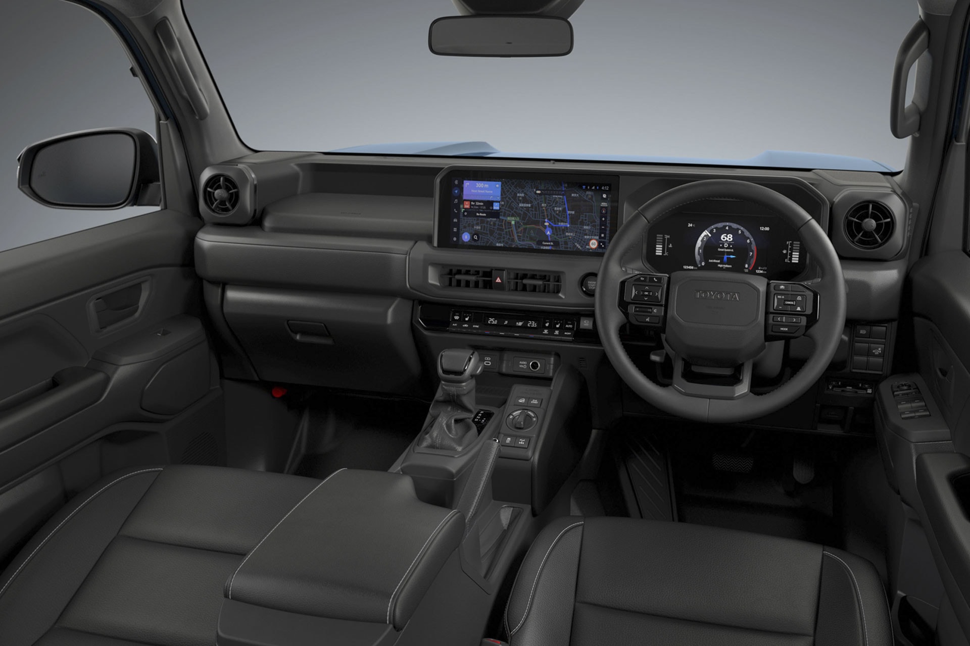 Nội thất tiếp tục theo triết lý “vừa đủ để bền bỉ”. Các núm xoay kích thước lớn thuận tiện thao tác khi đeo găng – chi tiết quen thuộc trên các mẫu Land Cruiser phục vụ địa hình. Bên cạnh đó, táp-lô vẫn cập nhật thời đại với bảng đồng hồ kỹ thuật số và màn hình giải trí trung tâm kích thước lớn.