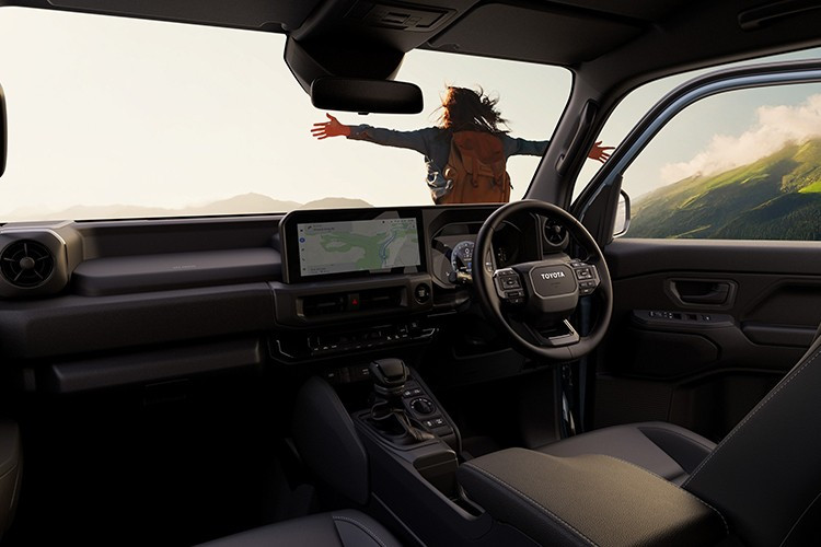 Cần số dạng cơ bắp cùng loạt nút chức năng cho off-road được bố trí rõ ràng, nhấn mạnh khả năng vận hành địa hình của mẫu xe. Dù chưa công bố chi tiết, Toyota xác nhận Land Cruiser FJ sẽ được trang bị gói an toàn chủ động Toyota Safety Sense, bao gồm các hệ thống hỗ trợ người lái tiên tiến nhất.