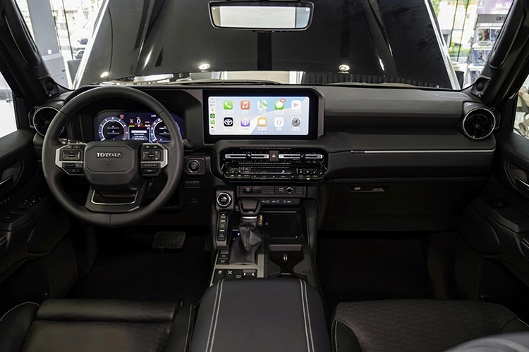 Bên trong nội thất, vô-lăng của xe mang phong cách cổ điển, đi kèm dòng chữ "TOYOTA" thay vì logo quen thuộc. Xe có tính năng sưởi vô-lăng, màn hình hiển thị HUD trên kính lái và cụm đồng hồ điện tử 12,3 inch phía sau tay lái.