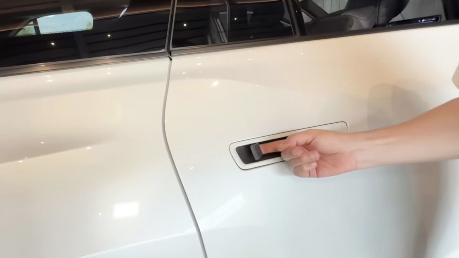 Điểm đáng chú ý nằm ở lẫy cơ khí ẩn bên trong hốc tay nắm, cho phép mở cửa thủ công khi hệ thống điện không hoạt động. Theo thông tin từ hãng, cơ chế này vận hành theo hai bước: kéo lần đầu để giải phóng chốt khóa, kéo lần thứ hai để mở cửa.