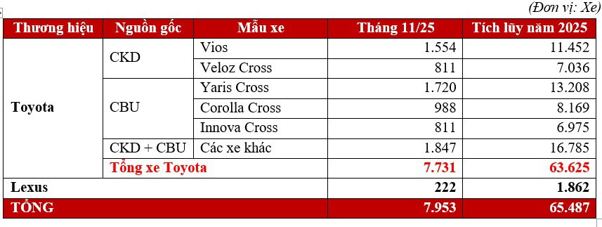 Nguồn Tri Thức & Cuộc Sống : https://kienthuc.net.vn/toyota-viet-nam-ban-ra-gan-8000-xe-trong-thang-112025-post1589538.html