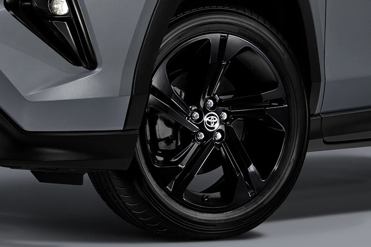 Toyota Yaris Cross HEV NightShade 2026 mới được trang bị bộ mâm hợp kim 18 inch đen bóng, gương chiếu hậu, viền đèn sương mù, viền cửa sổ, giá nóc và cánh gió sau đều được sơn đen đồng bộ.