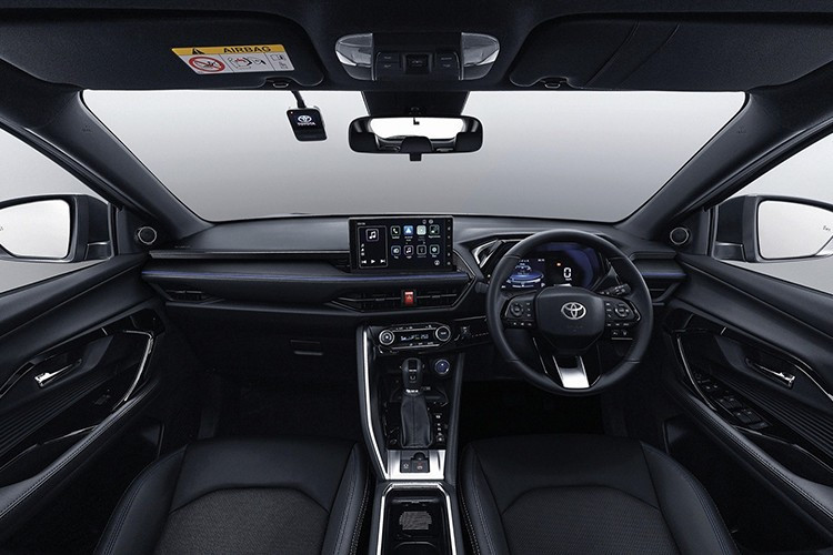 Yaris Cross HEV NightShade 2026 có màn hình cảm ứng 10,1 inch, hệ thống âm thanh 6 loa, sạc không dây, cửa sổ trời toàn cảnh, cốp điện có đá cốp, camera toàn cảnh và 6 túi khí. Xe cũng được tích hợp các tính năng an toàn chủ động trong gói Toyota Safety Sense.