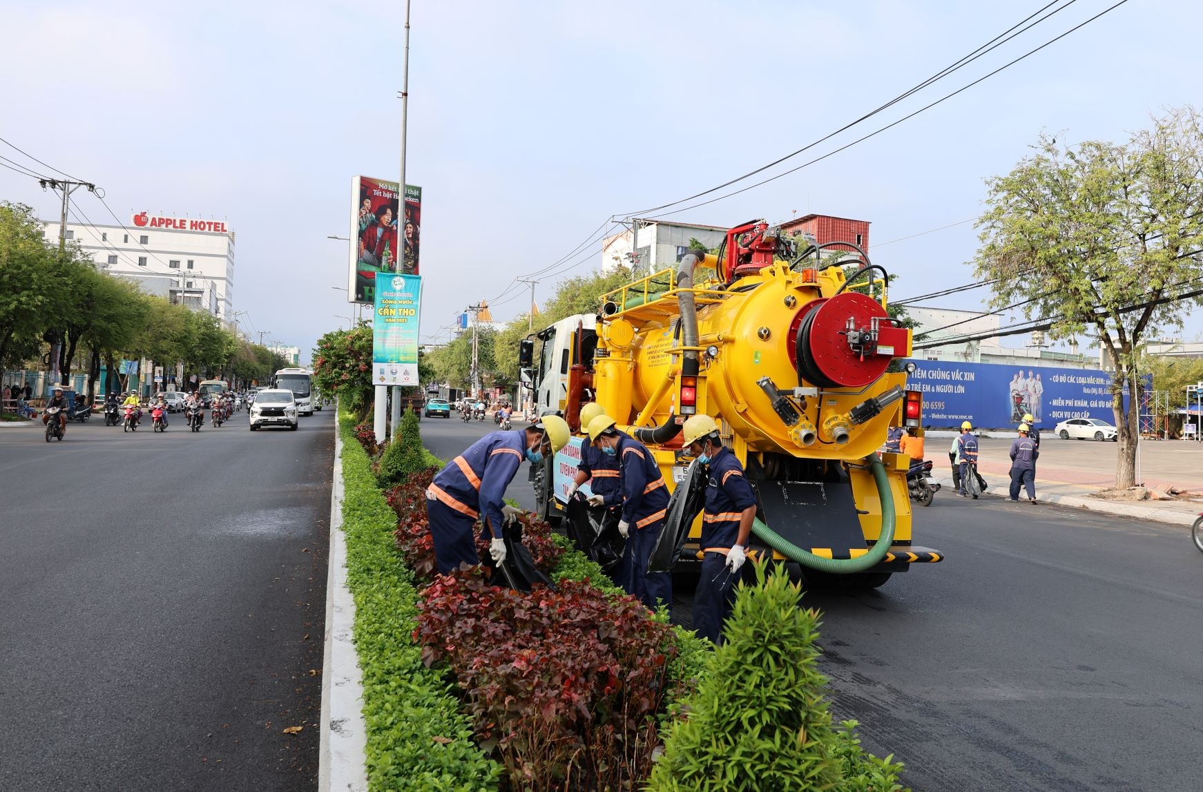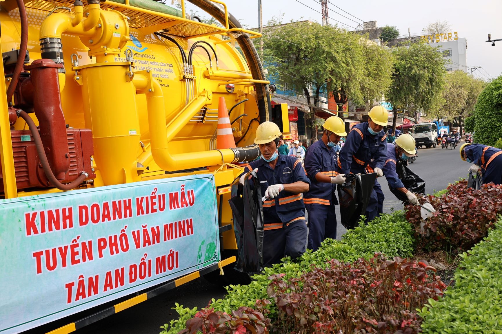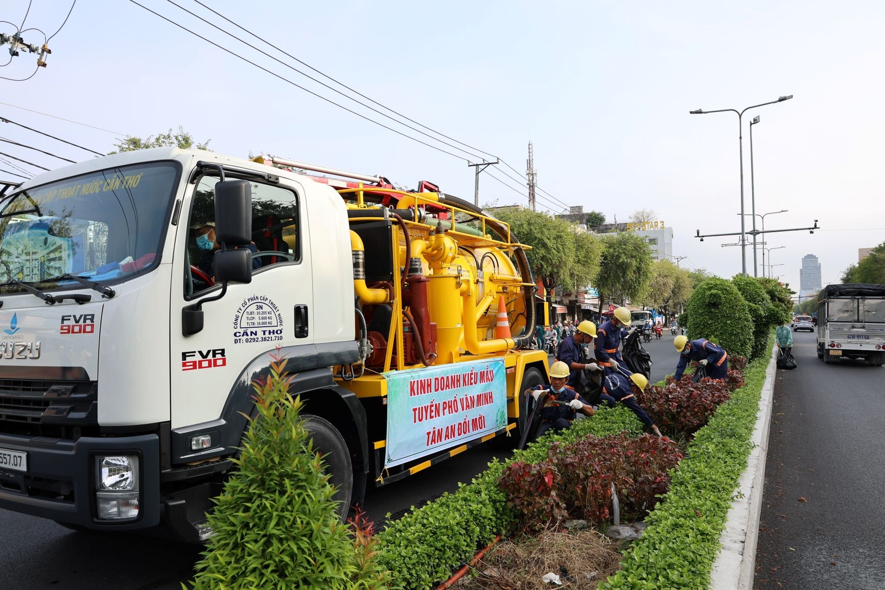 Công nhân Xí nghiệp cấp thoát nước TP. Cần Thơ cùng chung tay ra quân vệ sinh đường phố