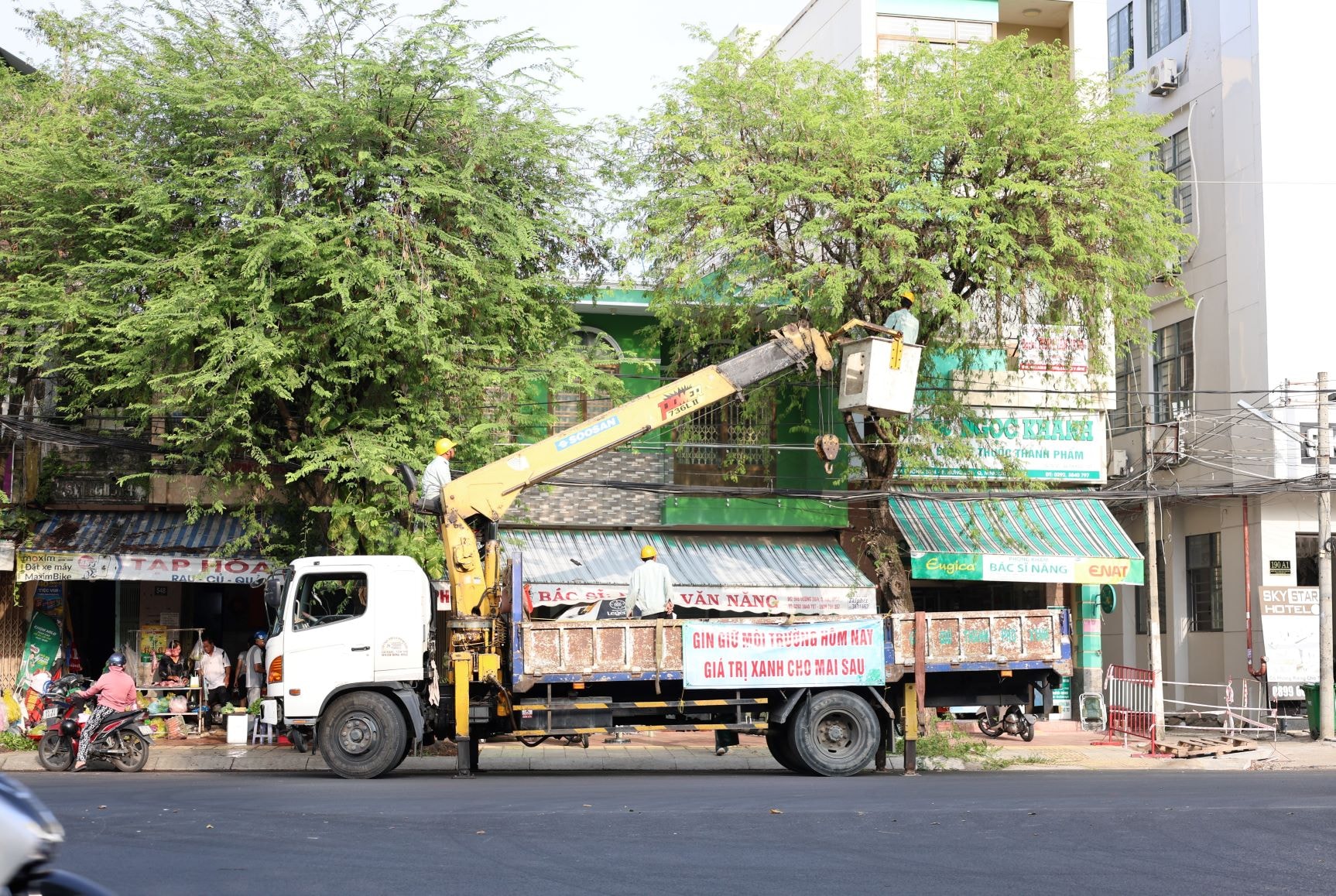 Lực lượng chức năng cũng ra quân cắt tỉa cây xanh, giúp đường phố thông thoáng hơn